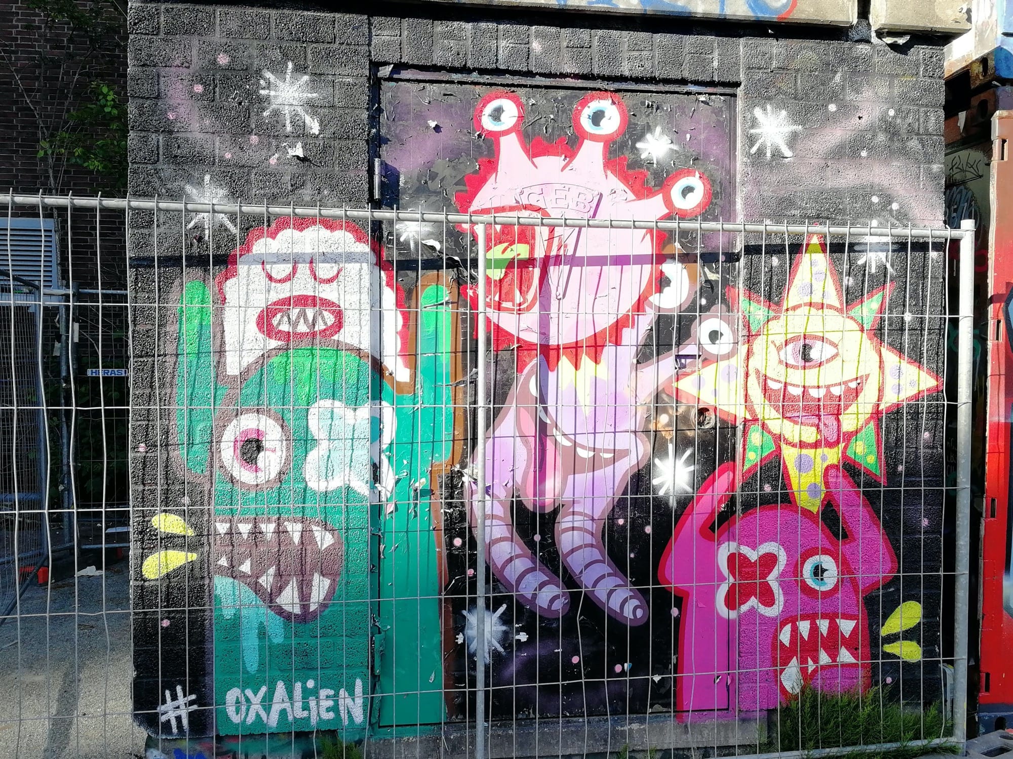 The artwork Oxalien is of graffiti type. You can admire it in the city of Amsterdam in Netherlands and more precisely here : T.T. Neveritaweg 1, 1033 RC Amsterdam, Pays-Bas.