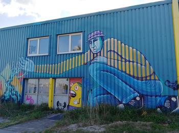 The artwork is of graffiti type. You can admire it in the city of Amsterdam in Netherlands and more precisely here : Ms. van Riemsdijkweg 63, 1033 RC Amsterdam, Pays-Bas.