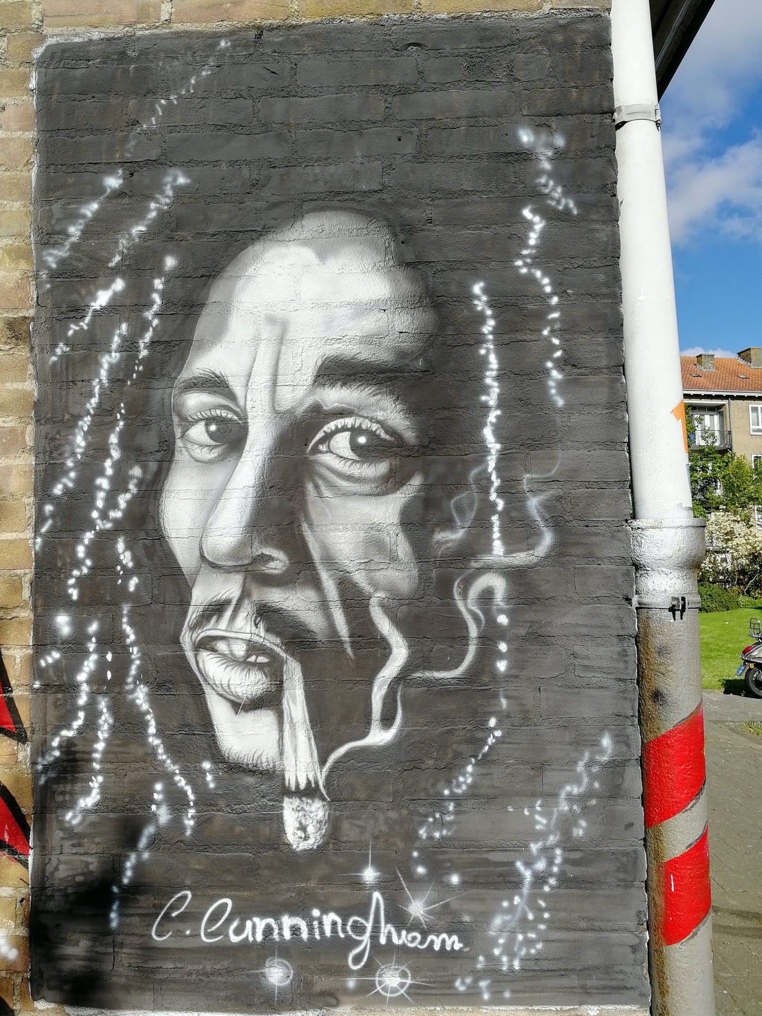 The artwork Bob Marley is of graffiti type. You can admire it in the city of Amsterdam in Netherlands and more precisely here : Immanuel Kanthof 2, 1064 VS Amsterdam, Pays-Bas.