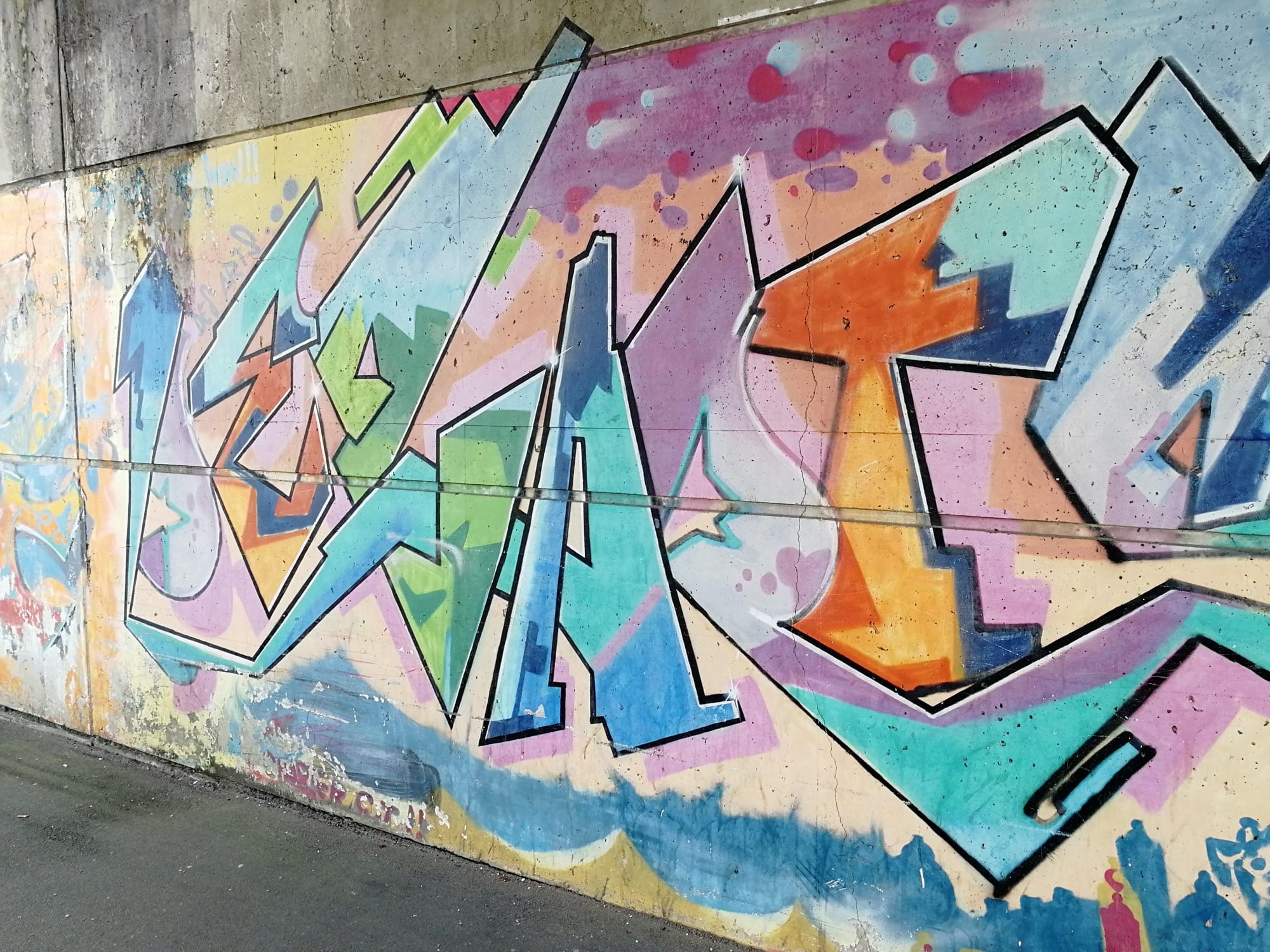 The artwork is of graffiti type. You can admire it in the city of Nantes in France and more precisely here : 1 Boulevard Henri Dunant, 44300 Nantes, France.