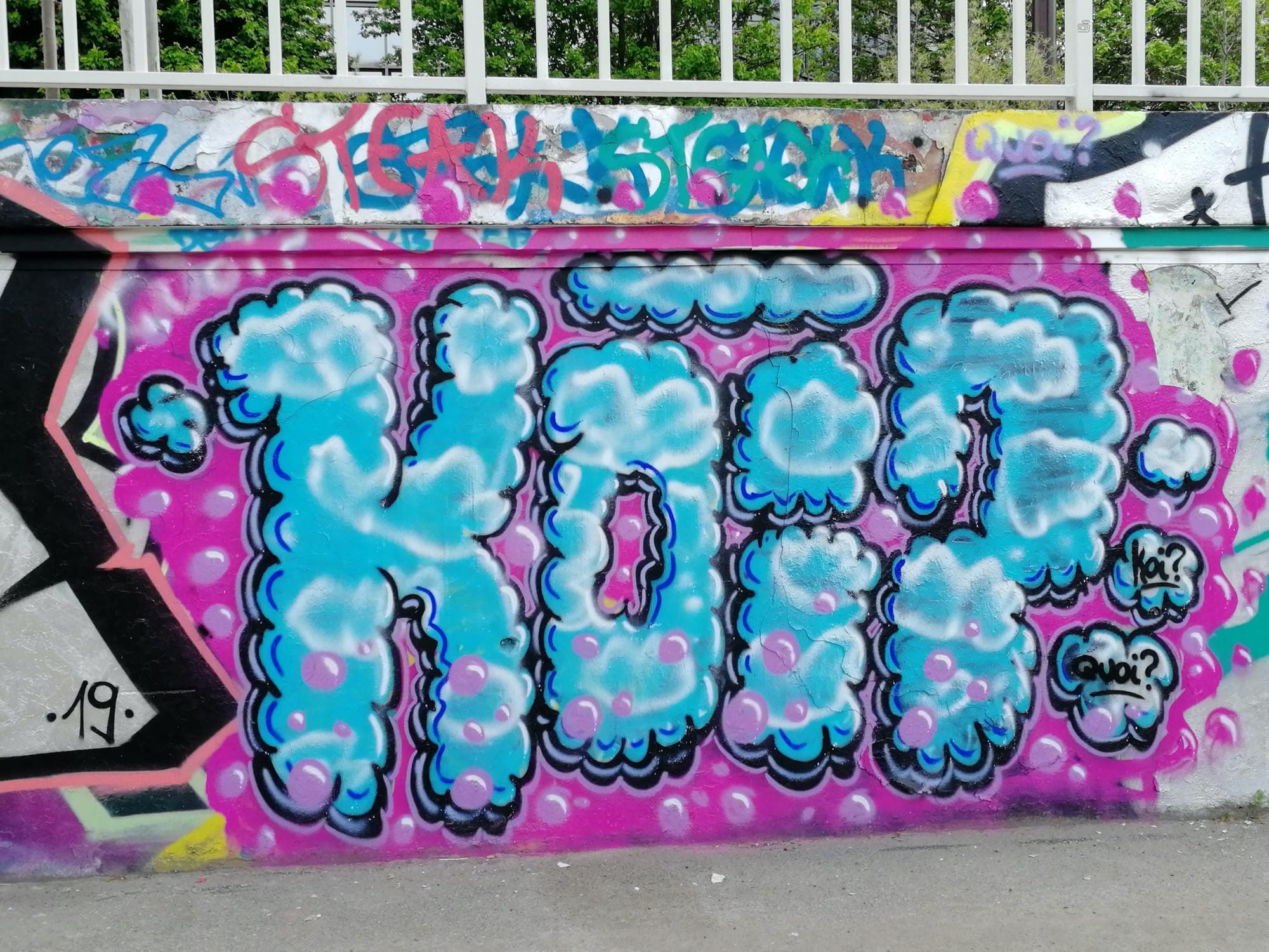 The artwork is of graffiti type. You can admire it in the city of Nantes in France and more precisely here : 17 Boulevard Gaston Doumergue, 44200 Nantes, France.