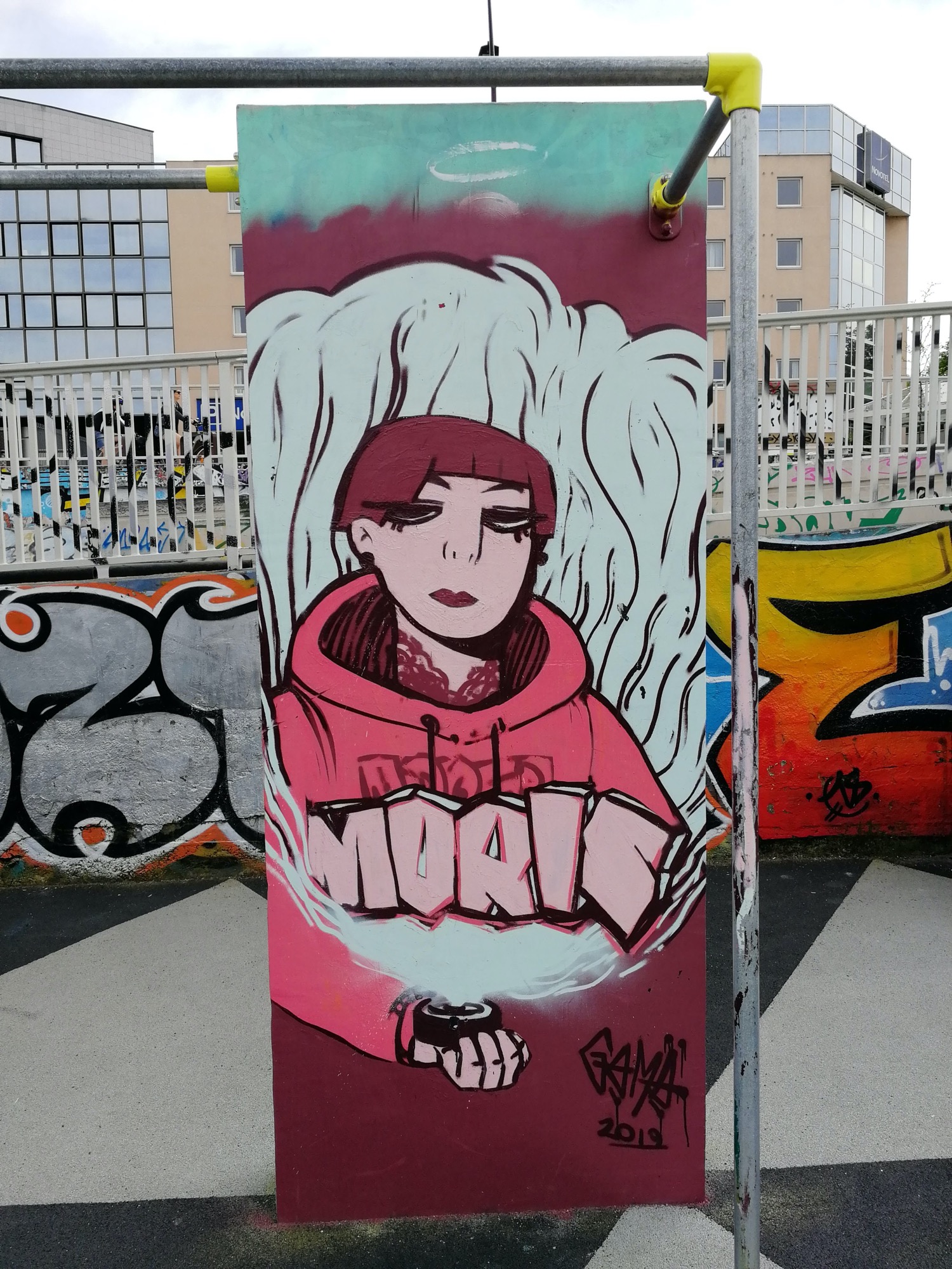 The artwork is of graffiti type. You can admire it in the city of Nantes in France and more precisely here : 23 Boulevard Gaston Doumergue, 44200 Nantes, France.