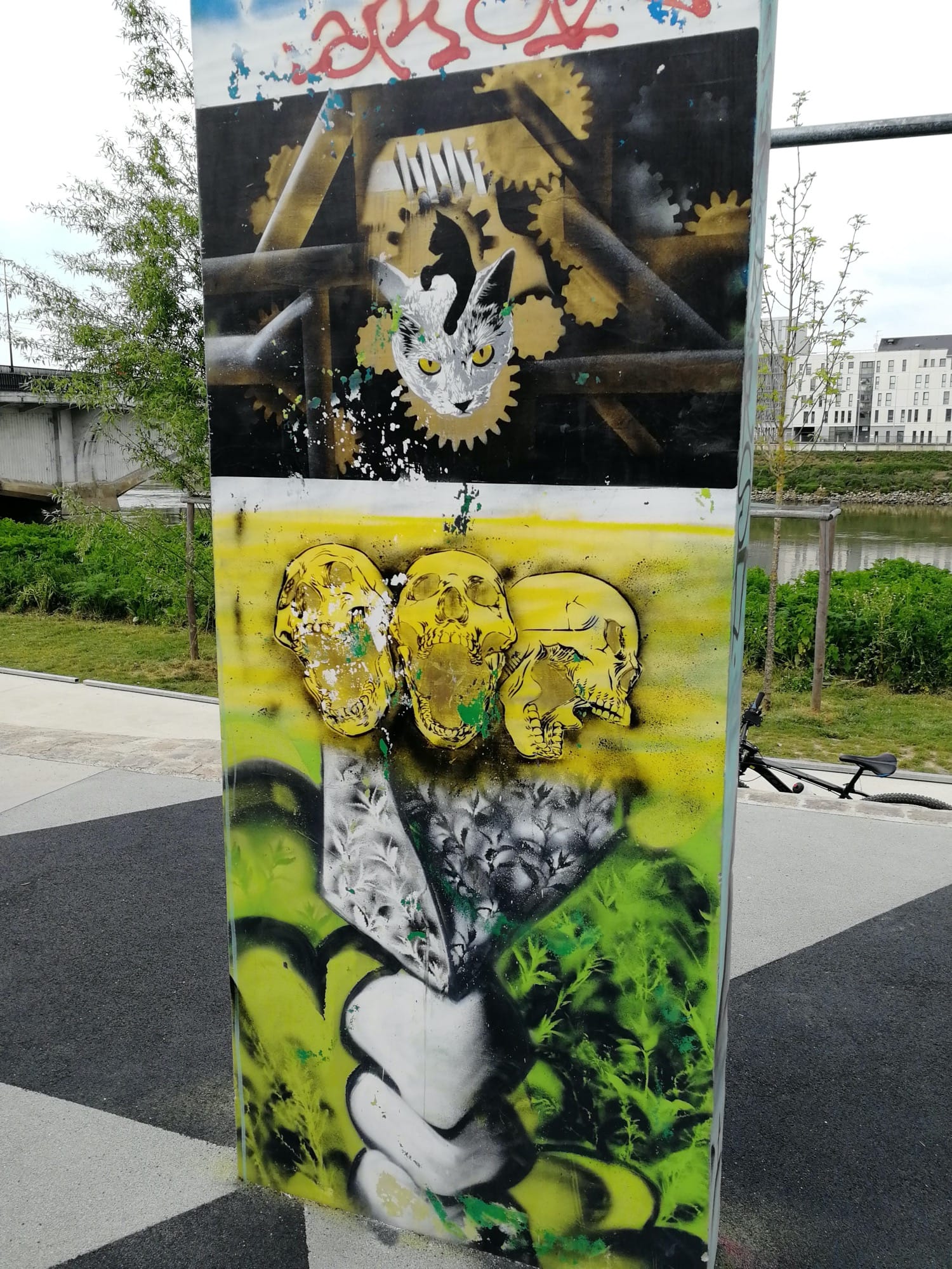 The artwork is of graffiti type. You can admire it in the city of Nantes in France and more precisely here : 23 Boulevard Gaston Doumergue, 44200 Nantes, France.