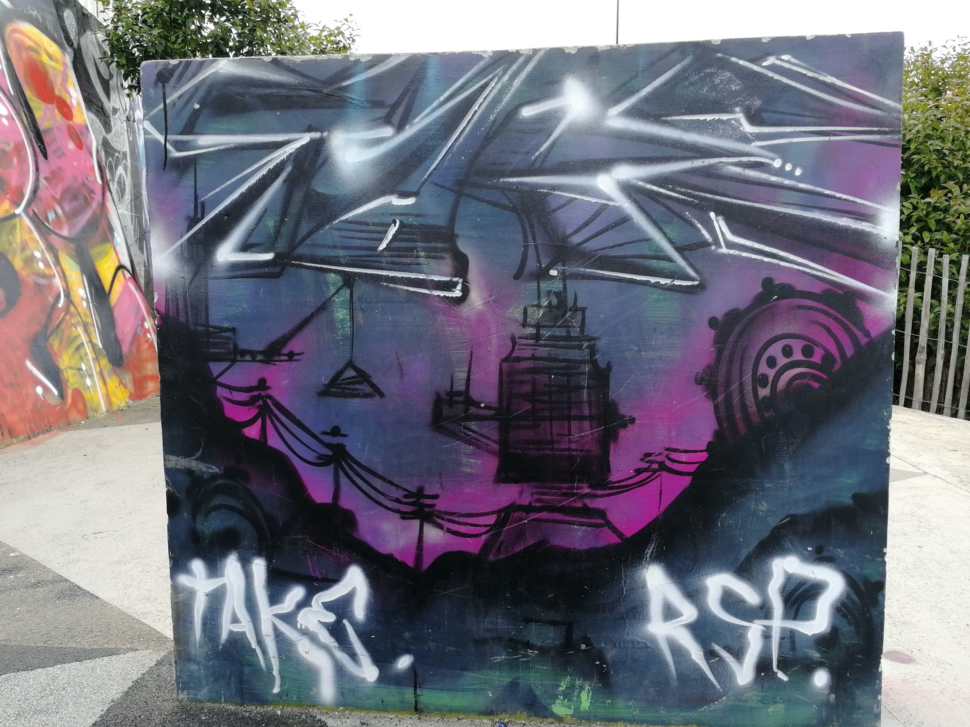 The artwork is of graffiti type. You can admire it in the city of Nantes in France and more precisely here : 23 Boulevard Gaston Doumergue, 44200 Nantes, France.