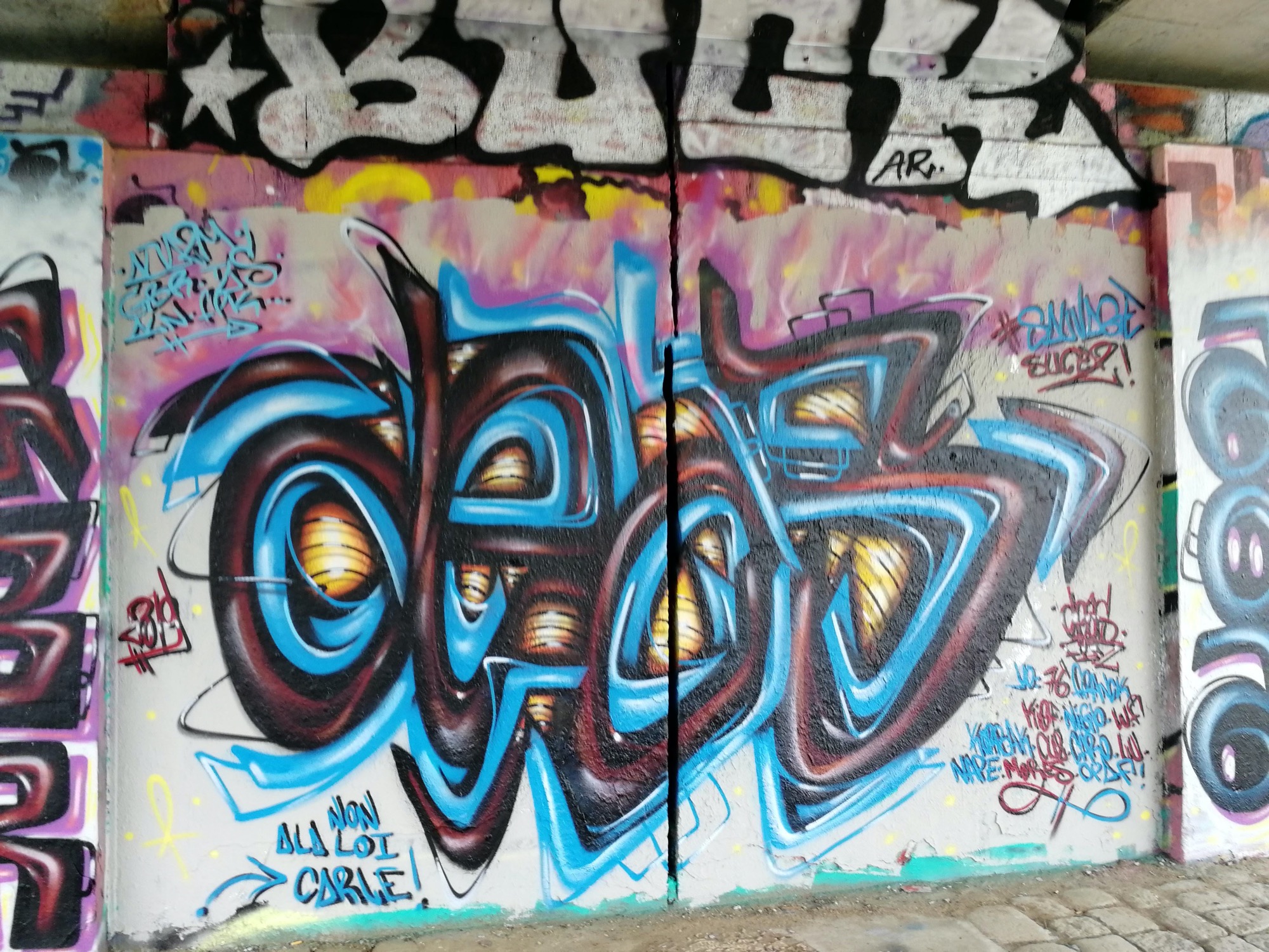 The artwork is of graffiti type. You can admire it in the city of Nantes in France and more precisely here : 2 Boulevard des Martyrs Nantais de la Résistance, 44200 Nantes, France.