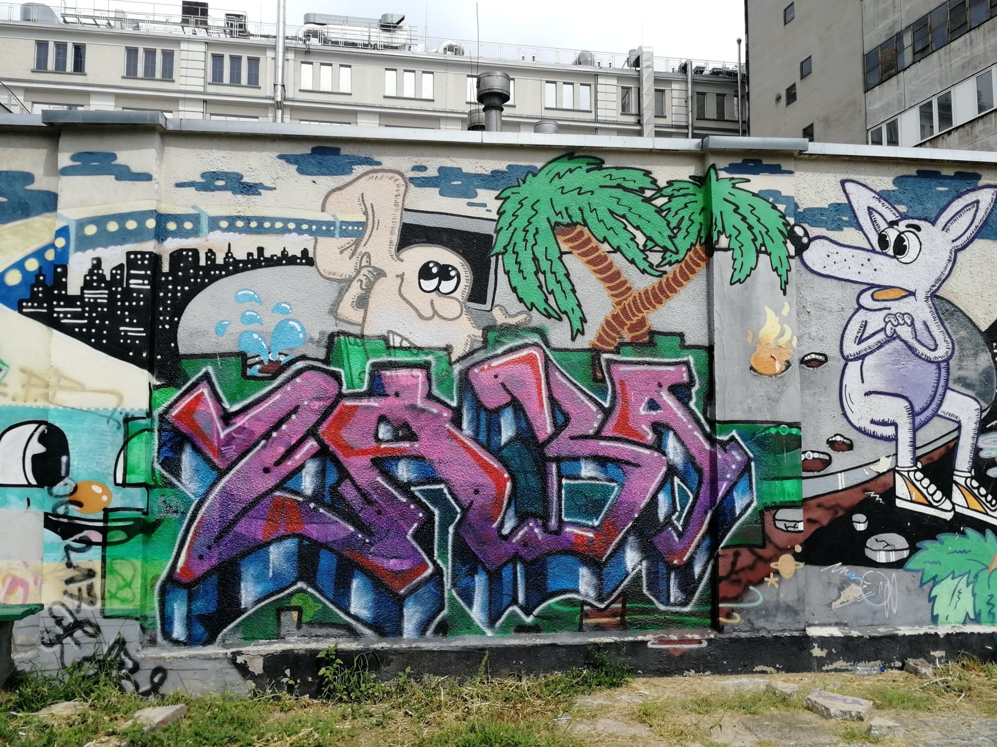 The artwork is of graffiti type. You can admire it in the city of Warszawa in Poland and more precisely here : aleja Wedla, 03-822 Warszawa, Pologne.
