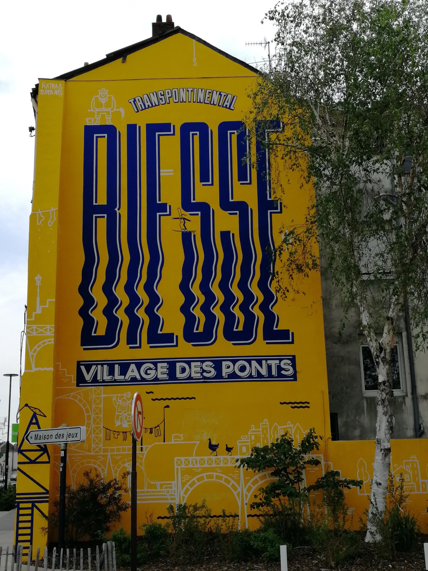 The artwork is of graffiti type. You can admire it in the city of Nantes in France and more precisely here : 1 Quai Hoche, 44200 Nantes, France.