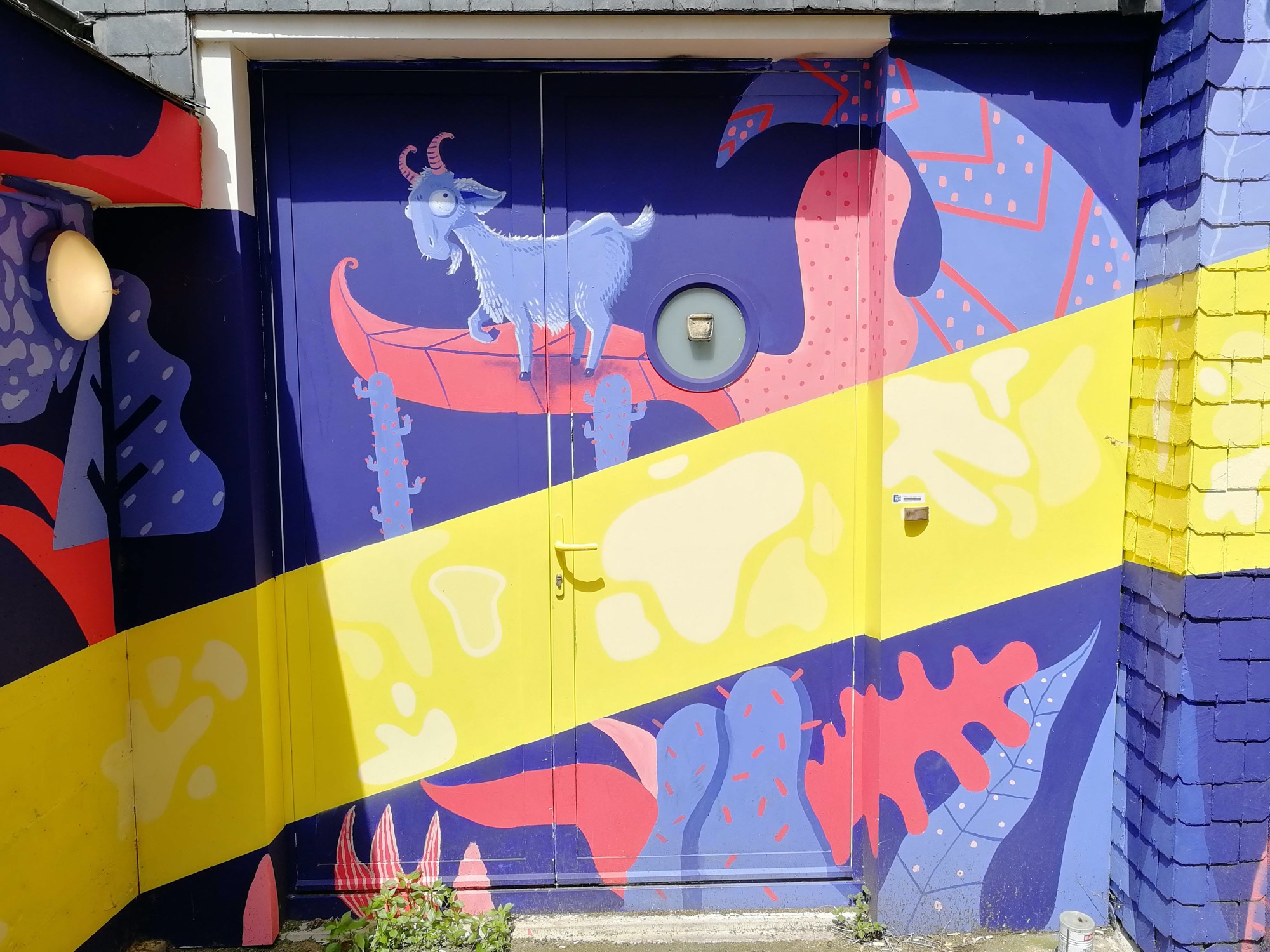 The artwork is of graffiti type. You can admire it in the city of Nantes in France and more precisely here : 4 Rue des Olivettes, 44000 Nantes, France.