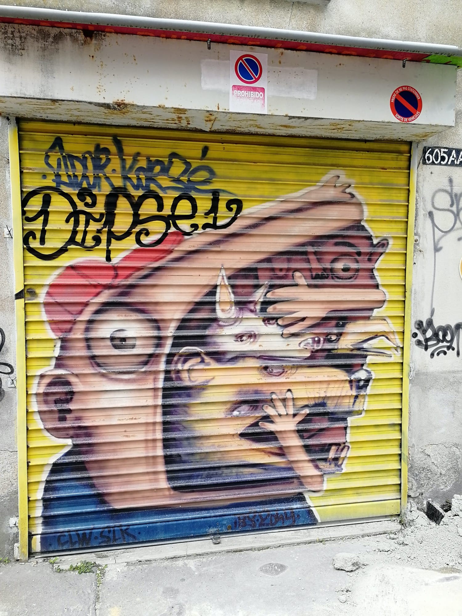 The artwork is of graffiti type. You can admire it in the city of Nantes in France and more precisely here : 10 Rue Sanlecque, 44000 Nantes, France.
