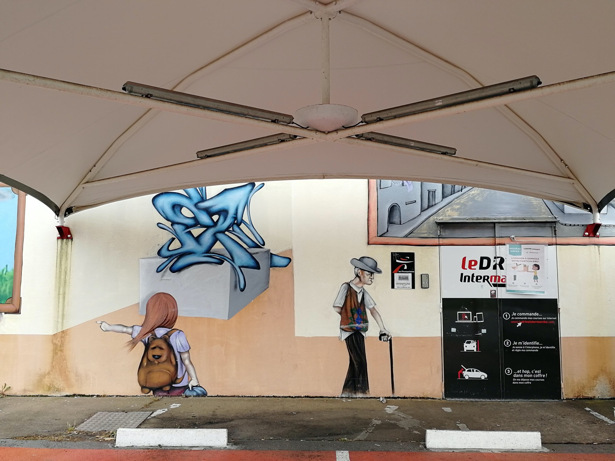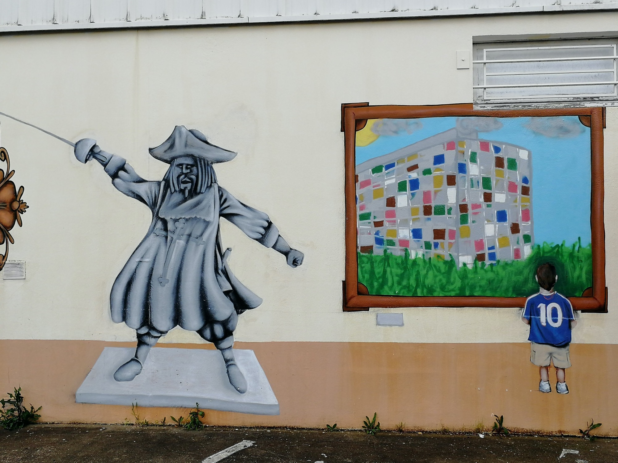 The artwork Les mousquetaires is of graffiti type. You can admire it in the city of Rezé in France and more precisely here : 1 Impasse de la Blordière, 44400 Rezé, France.