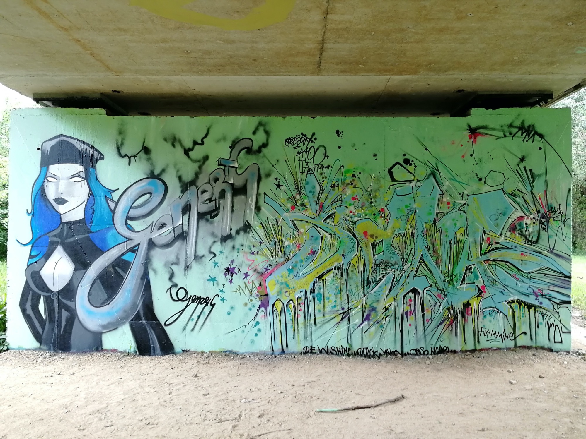 The artwork is of graffiti type. You can admire it in the city of Rezé in France and more precisely here : 13 Chemin Bleu, 44400 Rezé, France.