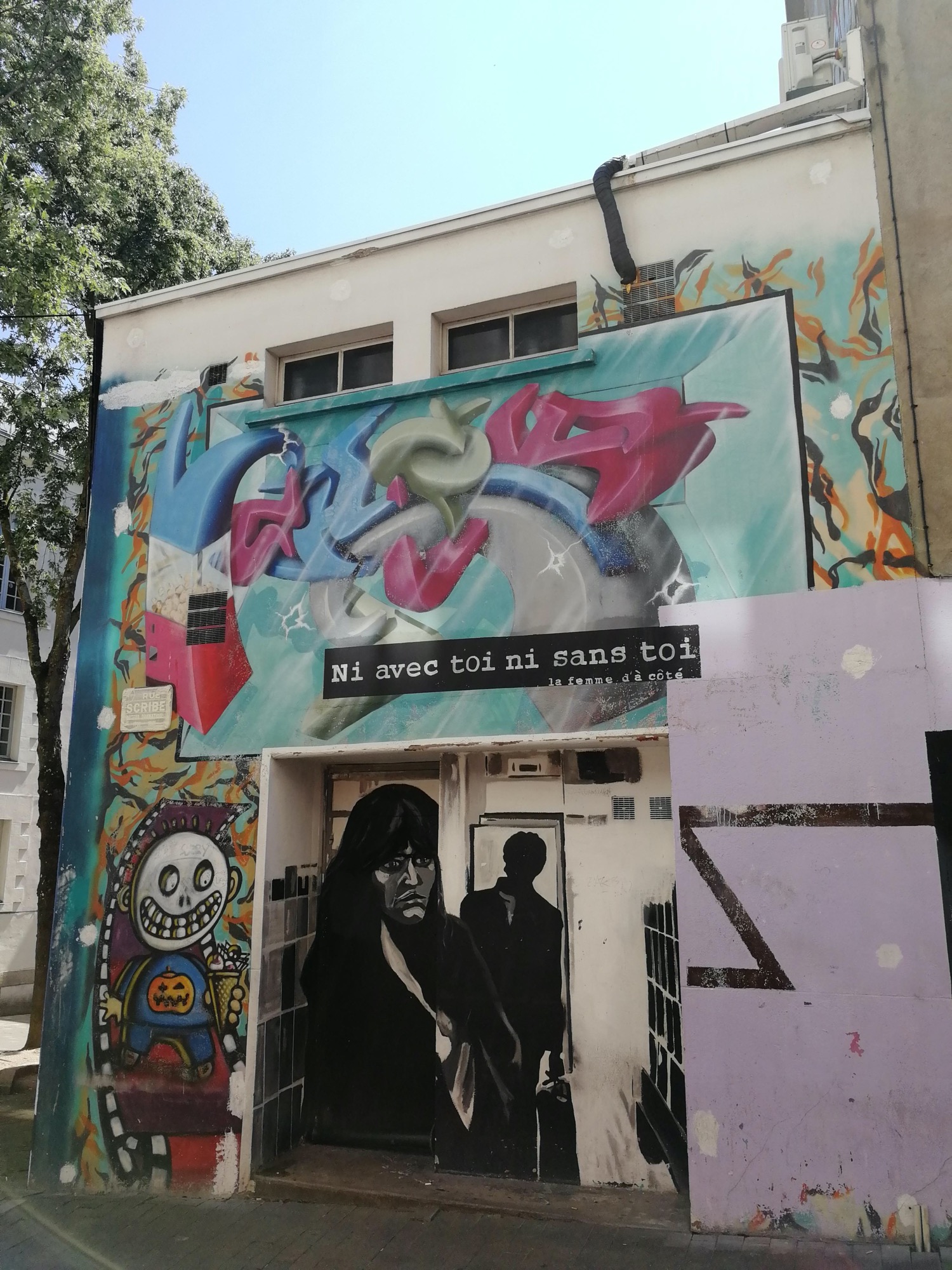 The artwork is of graffiti type. You can admire it in the city of Nantes in France and more precisely here : 26 Rue Scribe, 44000 Nantes, France.