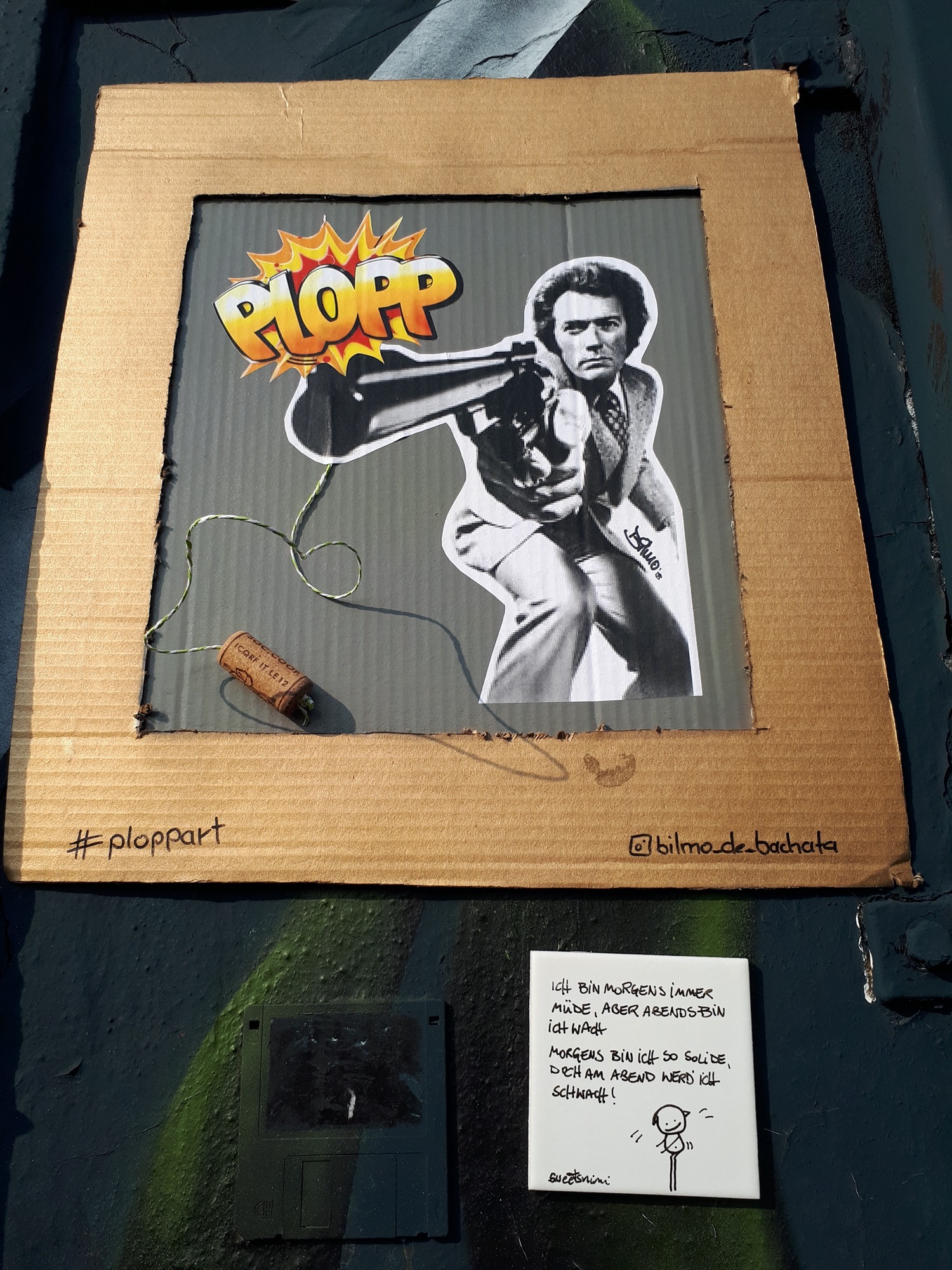 The artwork Ploppart is of sticking type. You can admire it in the city of Köln in Germany and more precisely here : Heliosstraße 15, 50825 Köln, Deutschland.