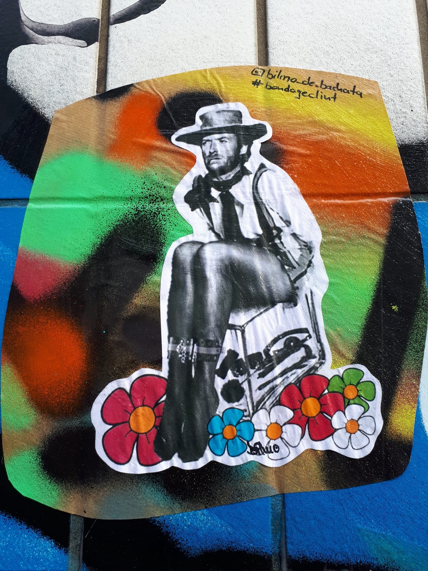 The artwork Bondage Clint is of sticking type. You can admire it in the city of Köln in Germany and more precisely here : Lichtstraße 46, 50825 Köln, Deutschland.