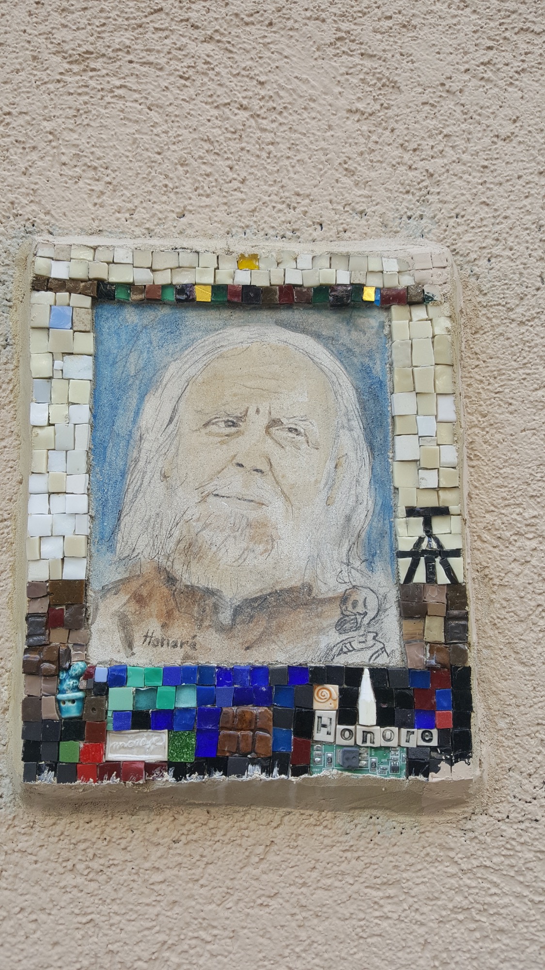 The artwork Morèje : Honoré is of mosaic type. You can admire it in the city of Paris in France and more precisely here : 11Z Rue Gaby Sylvia, 75011 Paris, France.