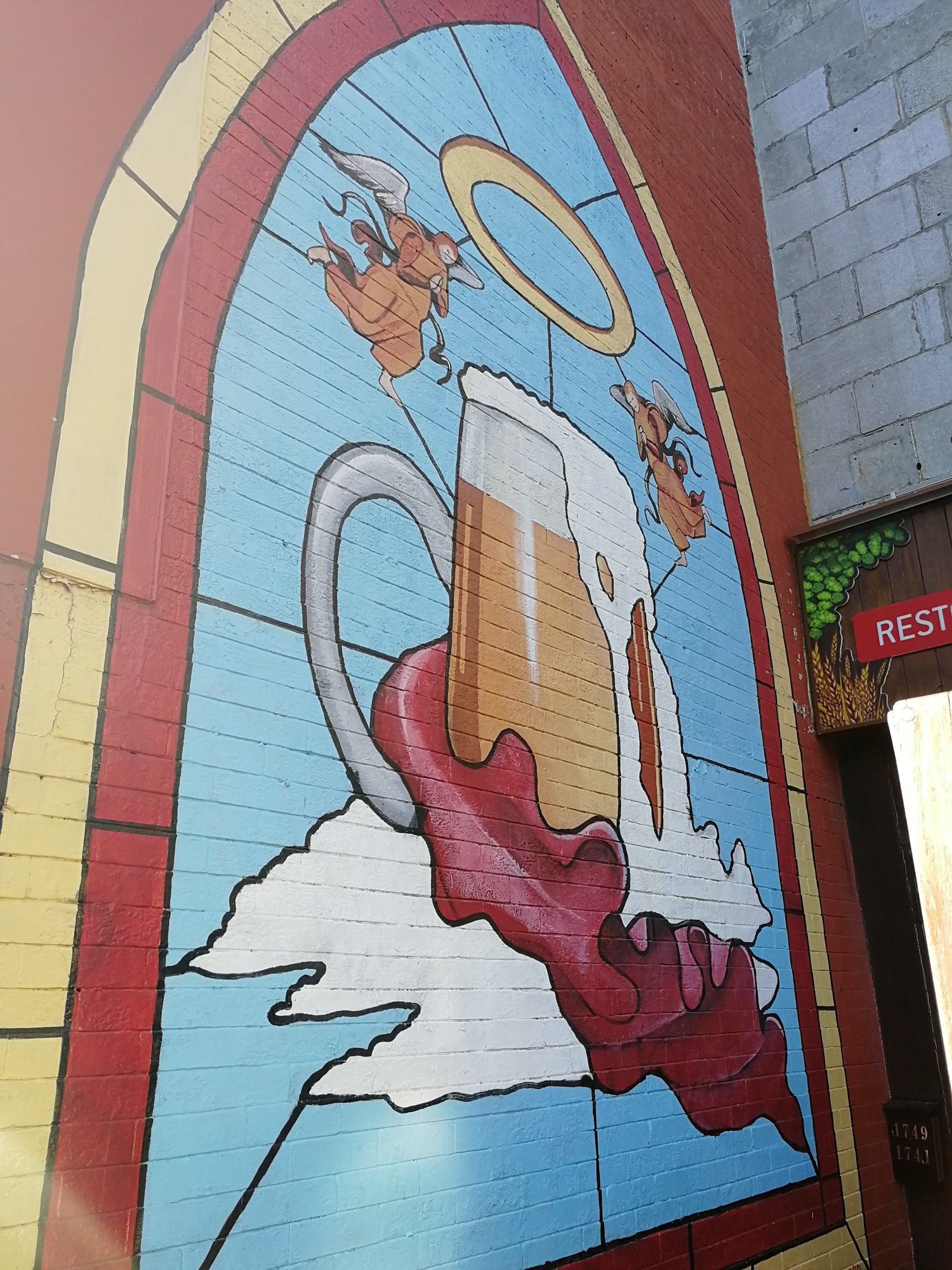 The artwork is of graffiti type. You can admire it in the city of Montréal in Canada and more precisely here : 1751 Rue Saint-Denis, Montréal, QC H2X 3K4, Canada.