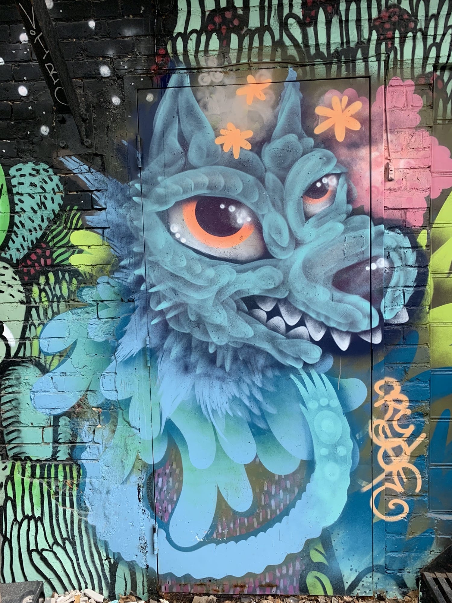 The artwork is of graffiti type. You can admire it in the city of Montréal in Canada and more precisely here : 3665 Rue Clark, Montréal, QC H2X 2S1, Canada.