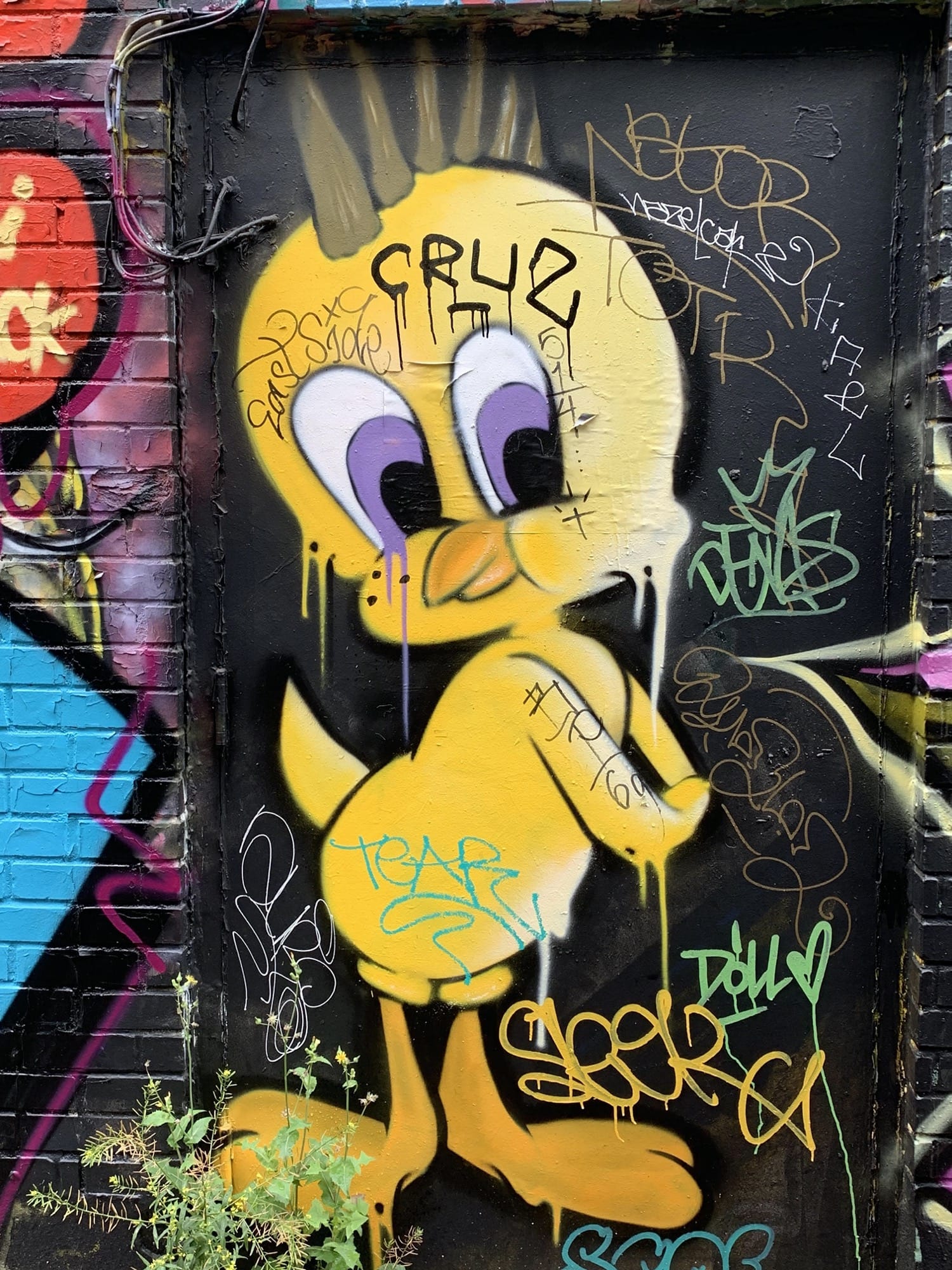 The artwork Titi is of graffiti type. You can admire it in the city of Montréal in Canada and more precisely here : 3911 Rue Clark, Montréal, QC H2W 1W5, Canada.
