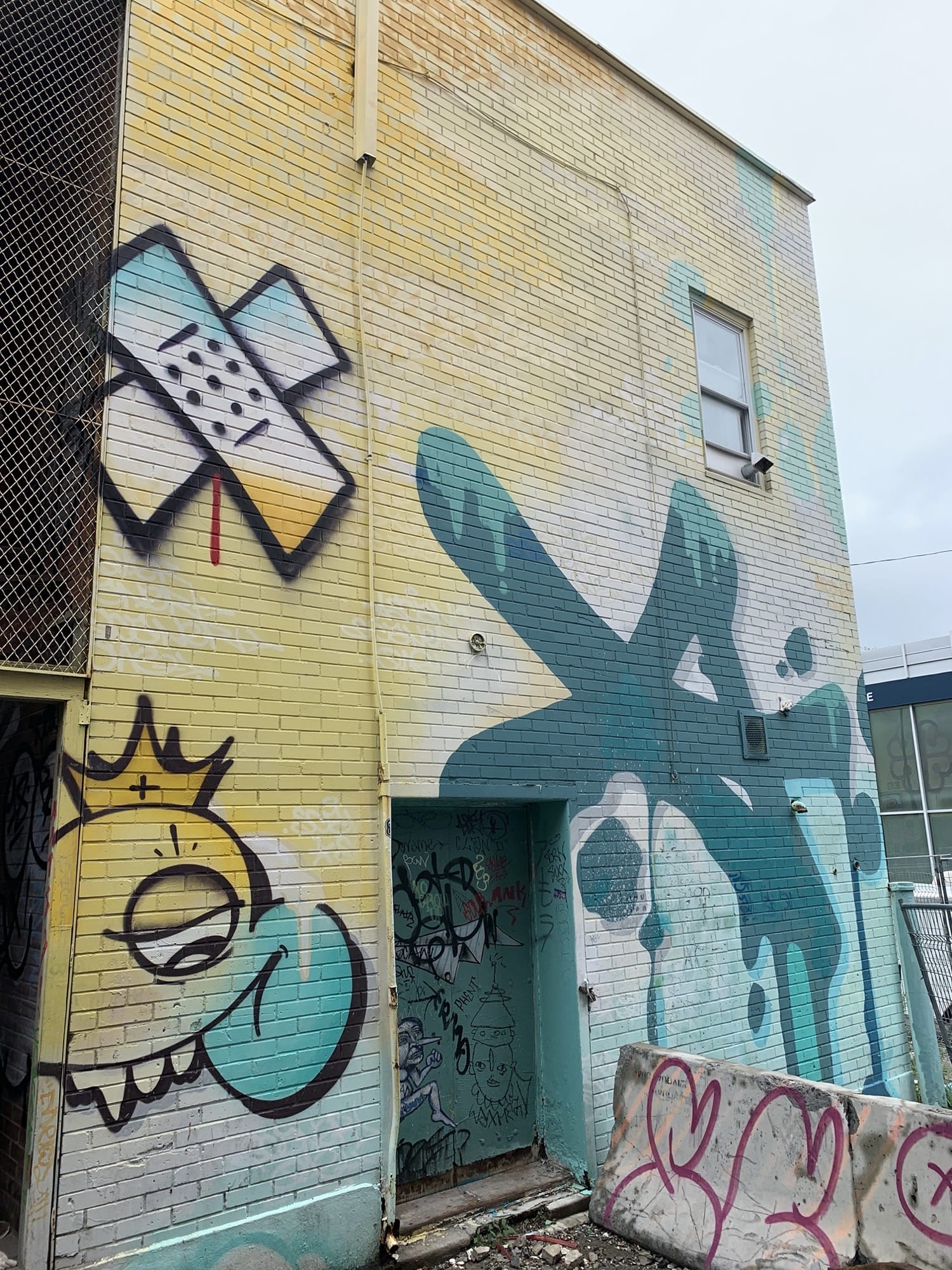 The artwork is of graffiti type. You can admire it in the city of Montréal in Canada and more precisely here : 17 Rue Saint Cuthbert, Montréal, QC H2W 1L2, Canada.