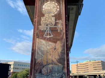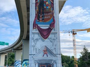 The artwork is of graffiti type. You can admire it in the city of Québec in Canada and more precisely here : 860 Boulevard Charest E, Québec, QC G1K, Canada.