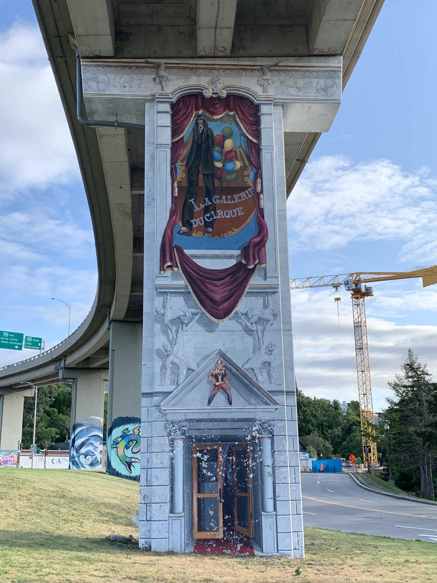 The artwork is of graffiti type. You can admire it in the city of Québec in Canada and more precisely here : 3 Boulevard Charest E, Québec, QC G1K 8H8, Canada.