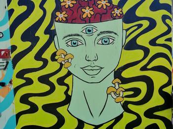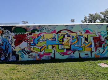 The artwork is of graffiti type. You can admire it in the city of Québec in Canada and more precisely here : 6 Rue Robert Rumilly, Québec, QC G1K 8B3, Canada.