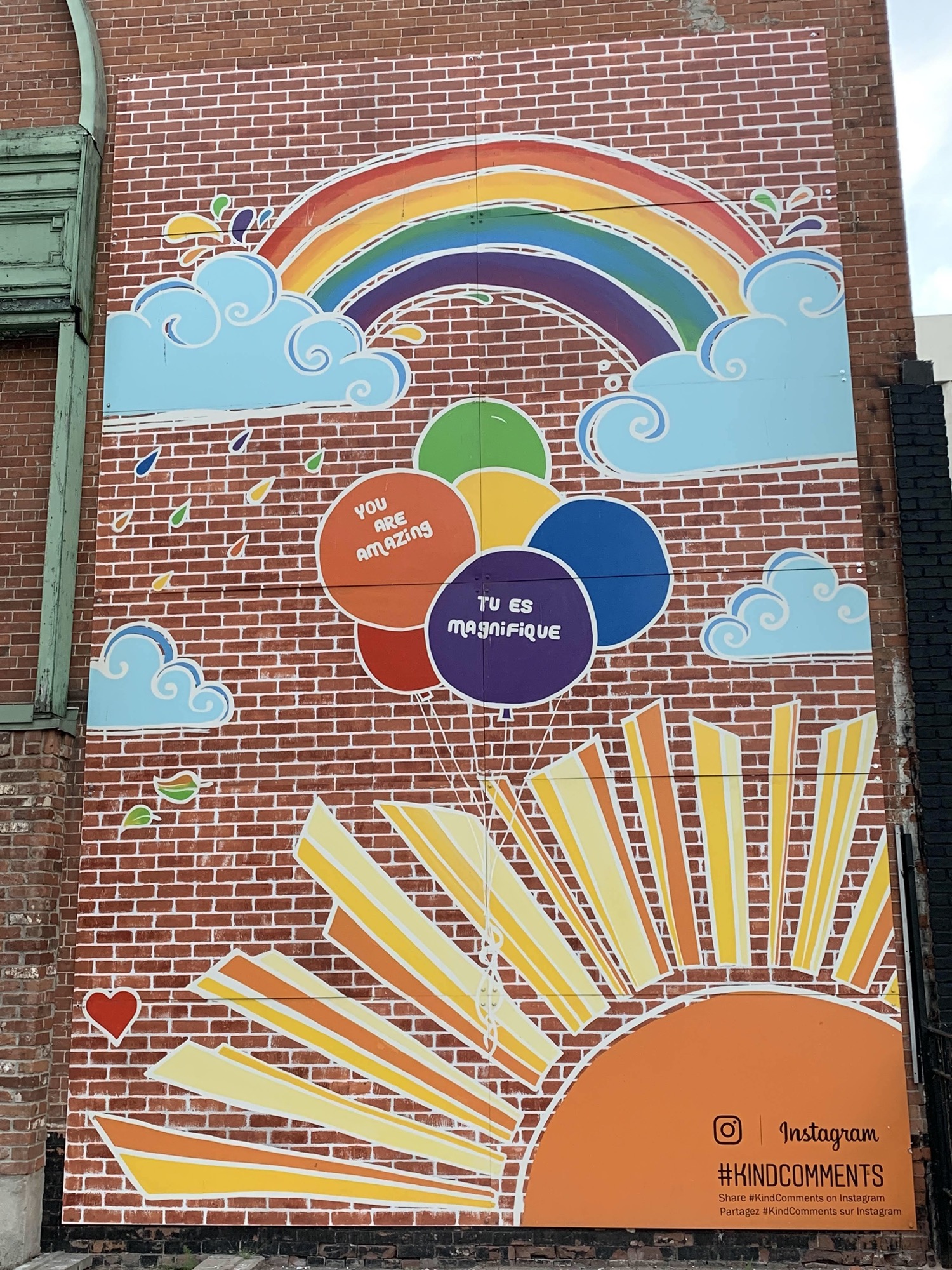 The artwork is of graffiti type. You can admire it in the city of Ottawa in Canada and more precisely here : 138 Bank St, Ottawa, ON K1P 5N8, Canada.