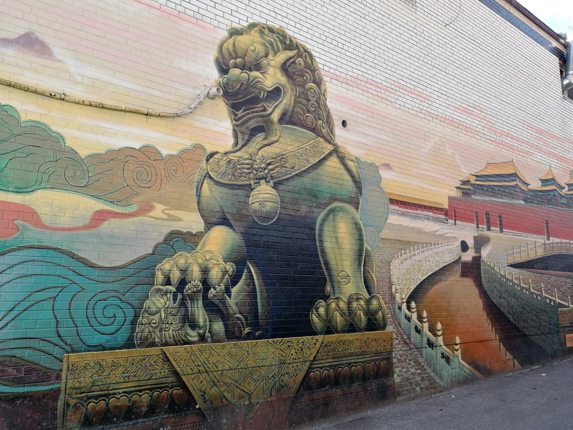 The artwork is of graffiti type. You can admire it in the city of Toronto in Canada and more precisely here : 435 Dundas St W, Toronto, ON M5T 1G6, Canada.