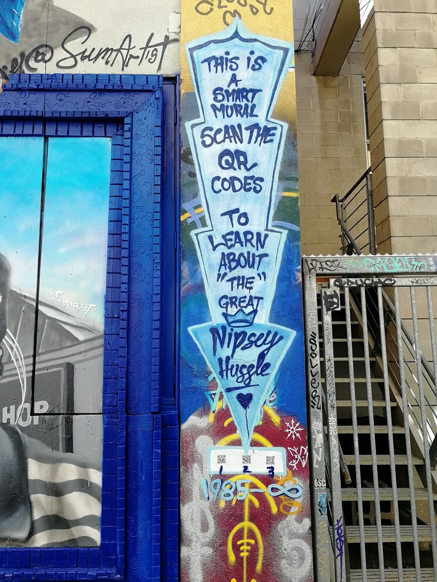 The artwork is of graffiti type. You can admire it in the city of Toronto in Canada and more precisely here : 550 R Richmond St W, Toronto, ON M5V 1Y4, Canada.