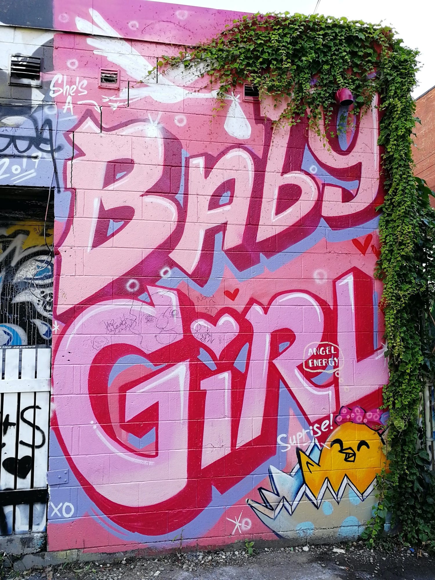 The artwork is of graffiti type. You can admire it in the city of Toronto in Canada and more precisely here : 530 R Richmond St W, Toronto, ON M5V 1Y4, Canada.