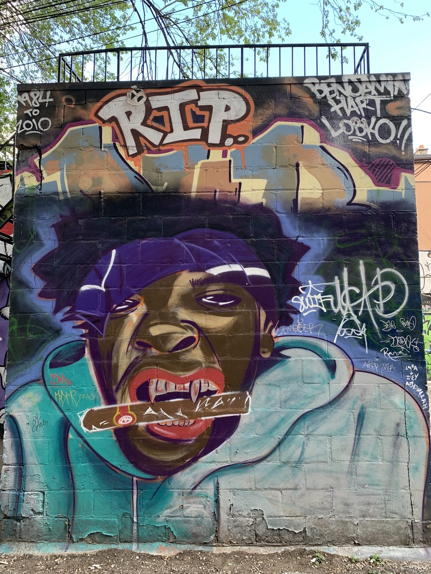 The artwork is of graffiti type. You can admire it in the city of Toronto in Canada and more precisely here : 496 Richmond St W, Toronto, ON M5V 3N4, Canada.
