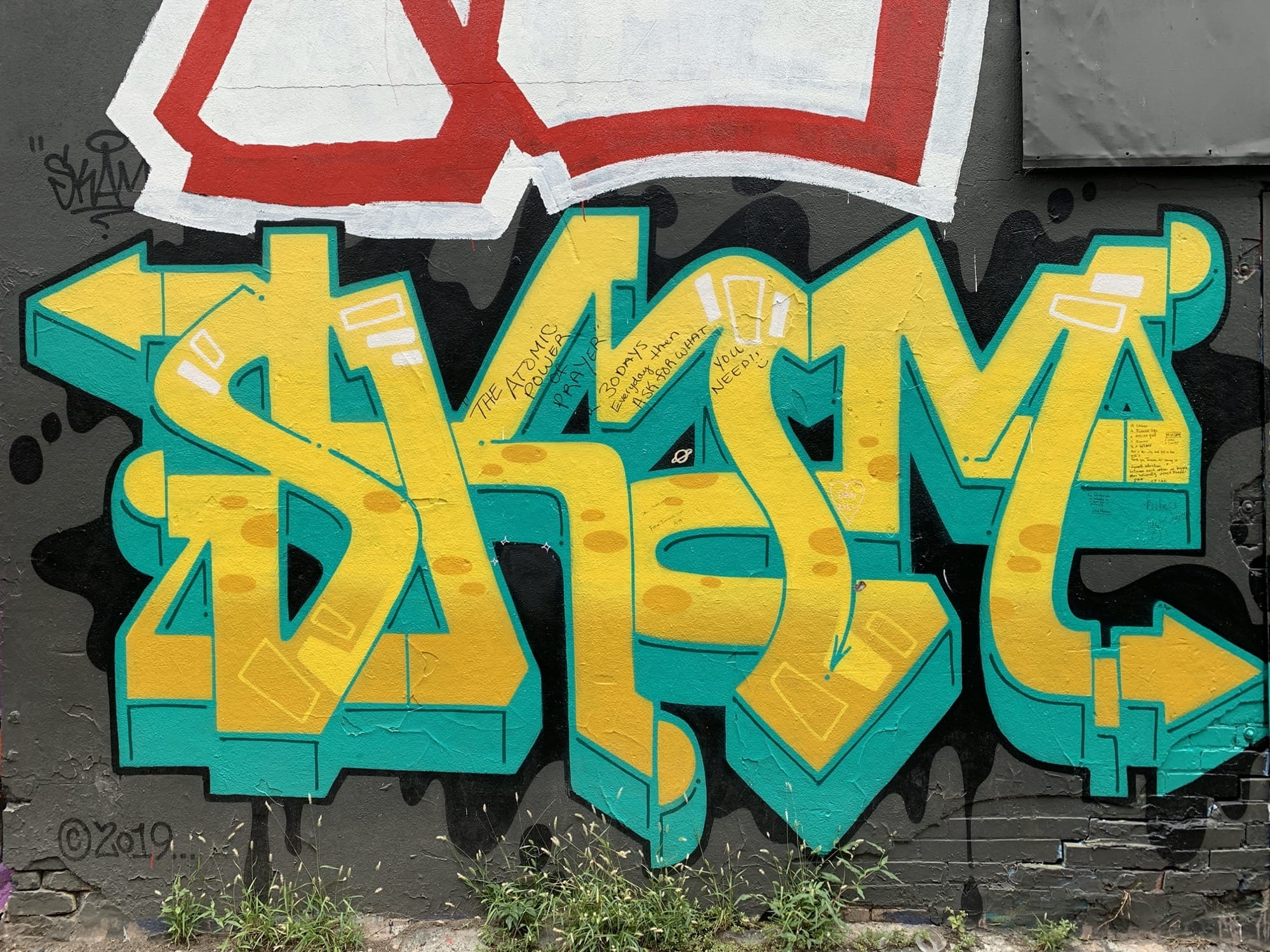 The artwork is of graffiti type. You can admire it in the city of Toronto in Canada and more precisely here : 490 Richmond St W, Toronto, ON M5V 1Y2, Canada.