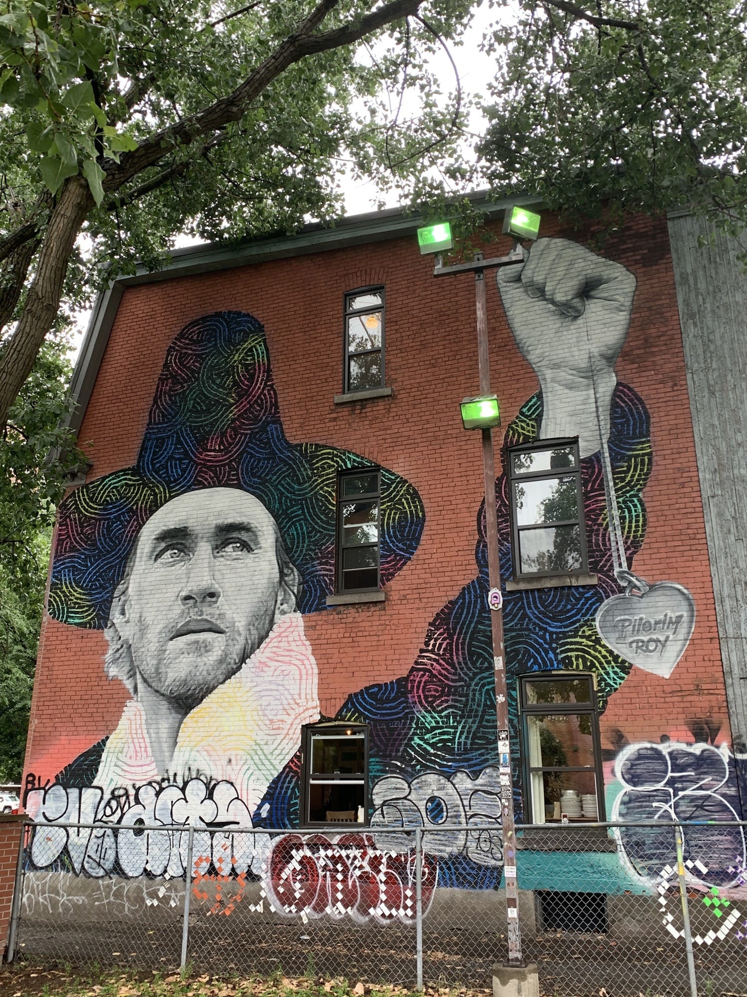 The artwork is of graffiti type. You can admire it in the city of Montréal in Canada and more precisely here : 3575 Rue Clark, Montréal, QC H2X 2R9, Canada.