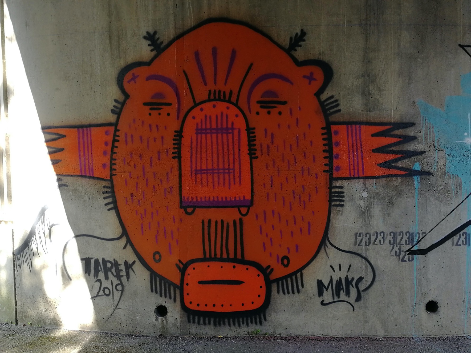 The artwork is of graffiti type. You can admire it in the city of Vannes in France and more precisely here : 13 Rue du 8 Mai 1945, 56000 Vannes, France.