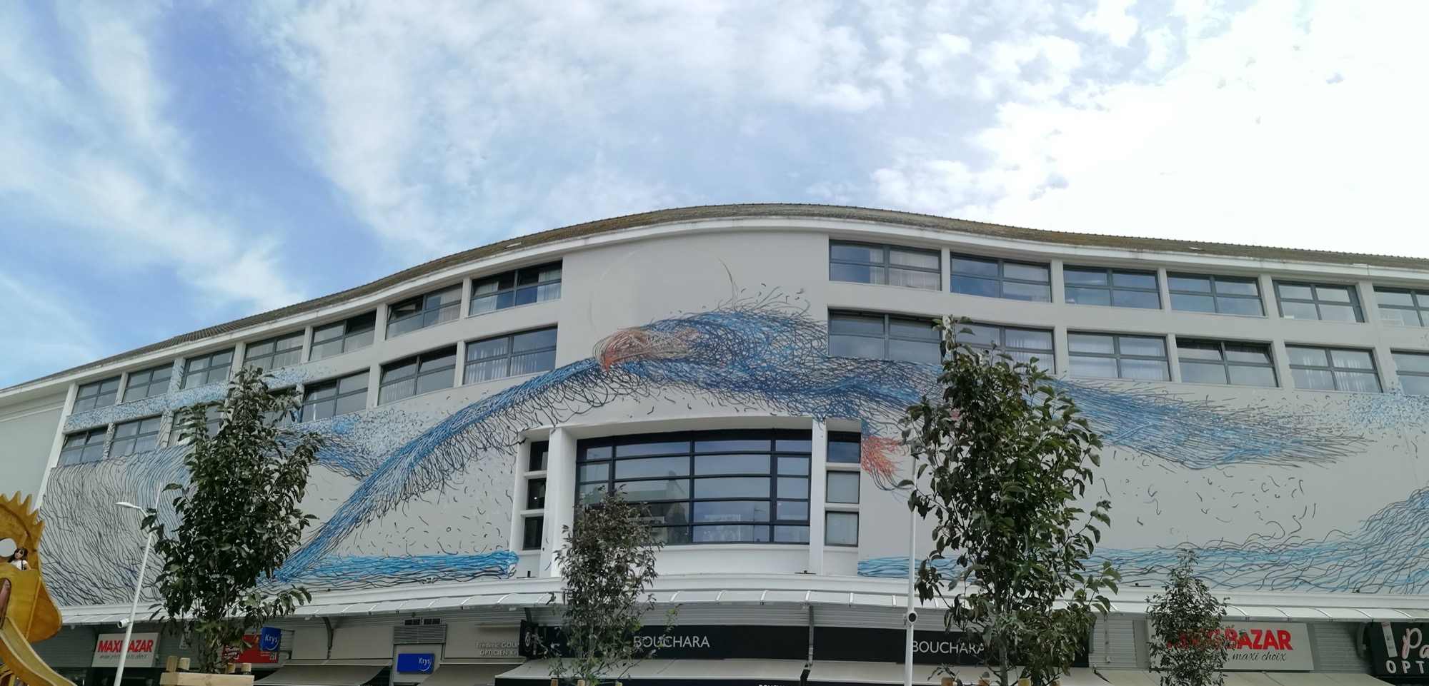 The artwork is of graffiti type. You can admire it in the city of Saint-Nazaire in France and more precisely here : 38 Avenue de la République, 44600 Saint-Nazaire, France.