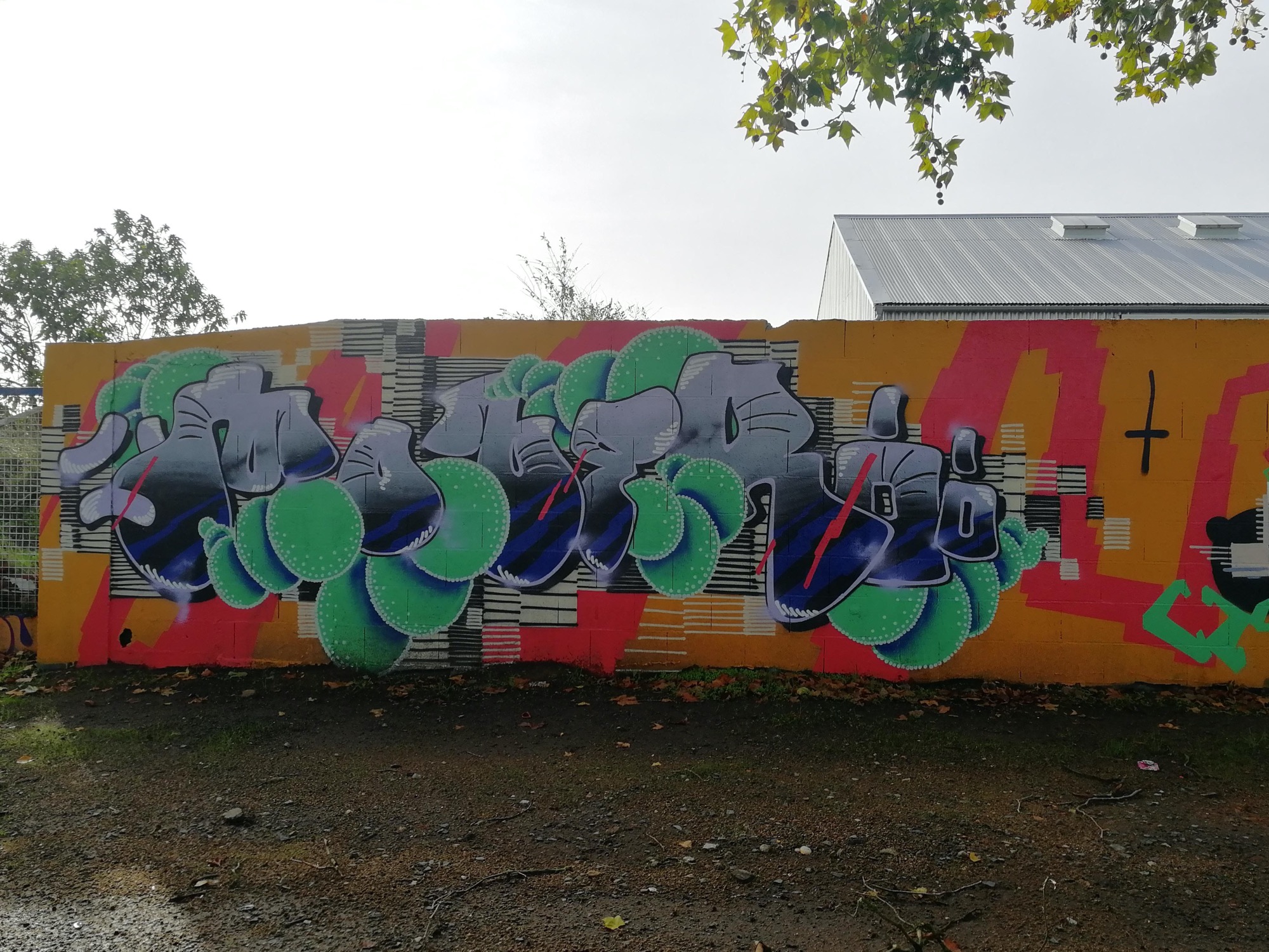 The artwork is of graffiti type. You can admire it in the city of Nantes in France and more precisely here : 11 Rue St Domingue, 44200 Nantes, France.