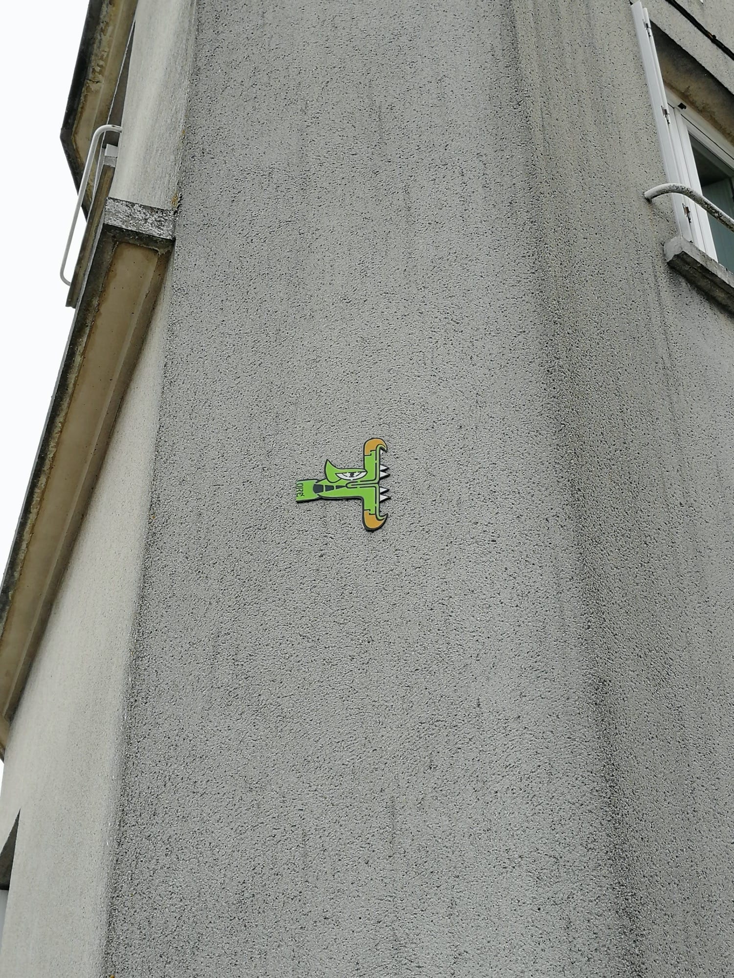 The artwork is of graffiti type. You can admire it in the city of Rezé in France and more precisely here : 5 Quai Marcel Boissard, 44400 Rezé, France.