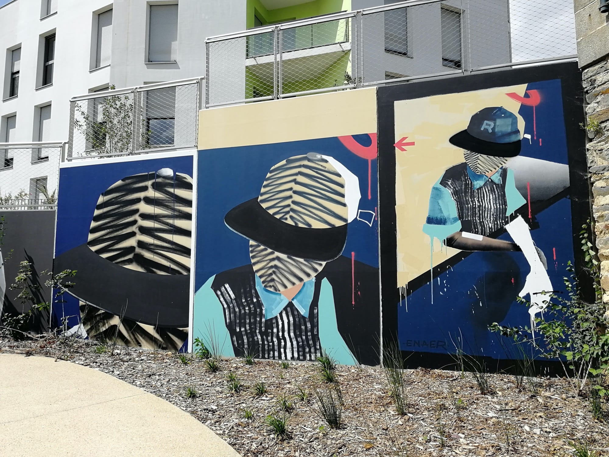 The artwork is of graffiti type. You can admire it in the city of Rennes in France and more precisely here : 24 Boulevard Villebois Mareuil, 35000 Rennes, France.