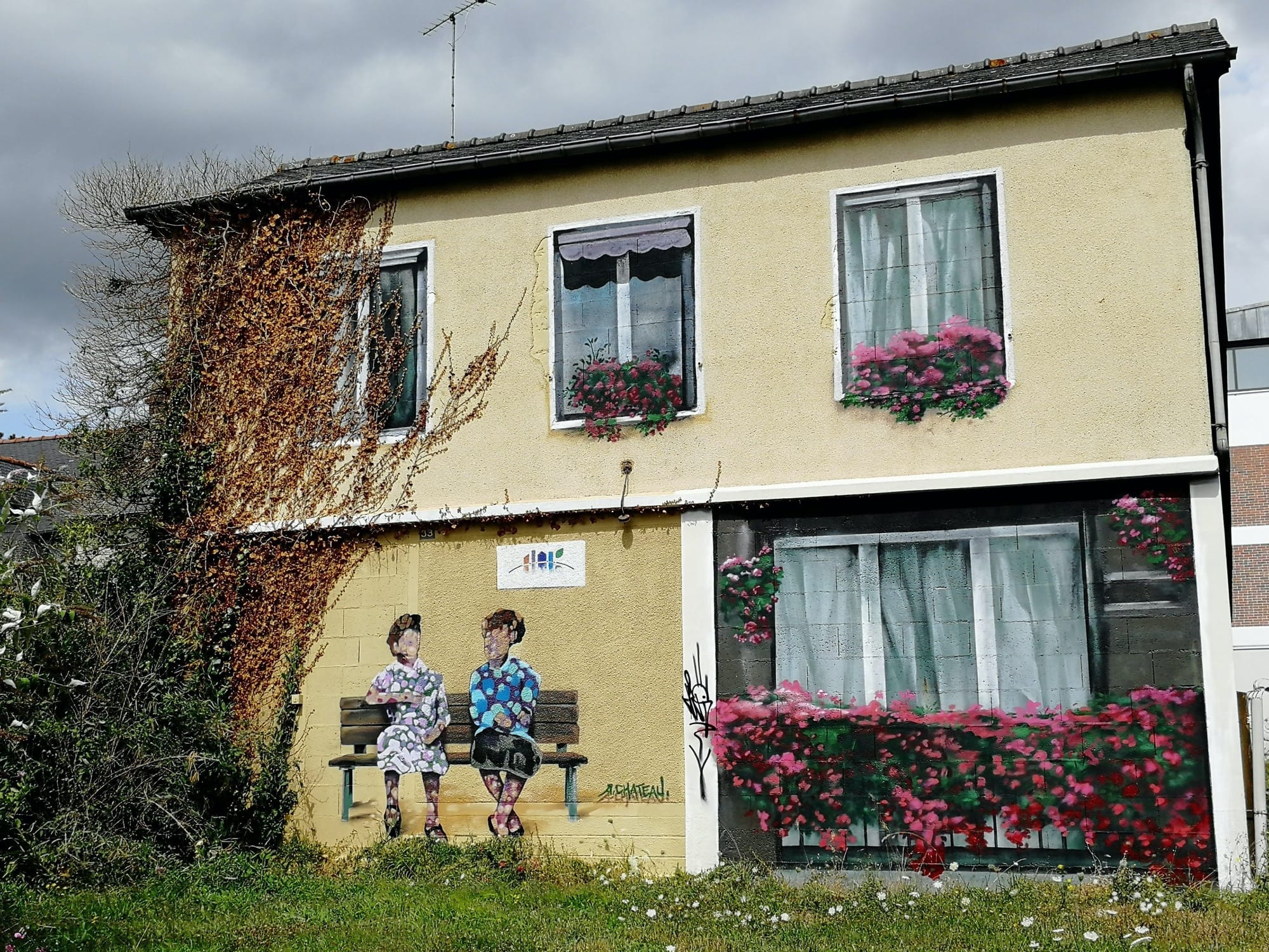 The artwork is of graffiti type. You can admire it in the city of Chantepie in France and more precisely here : 31 Avenue André Bonnin, 35135 Chantepie, France.