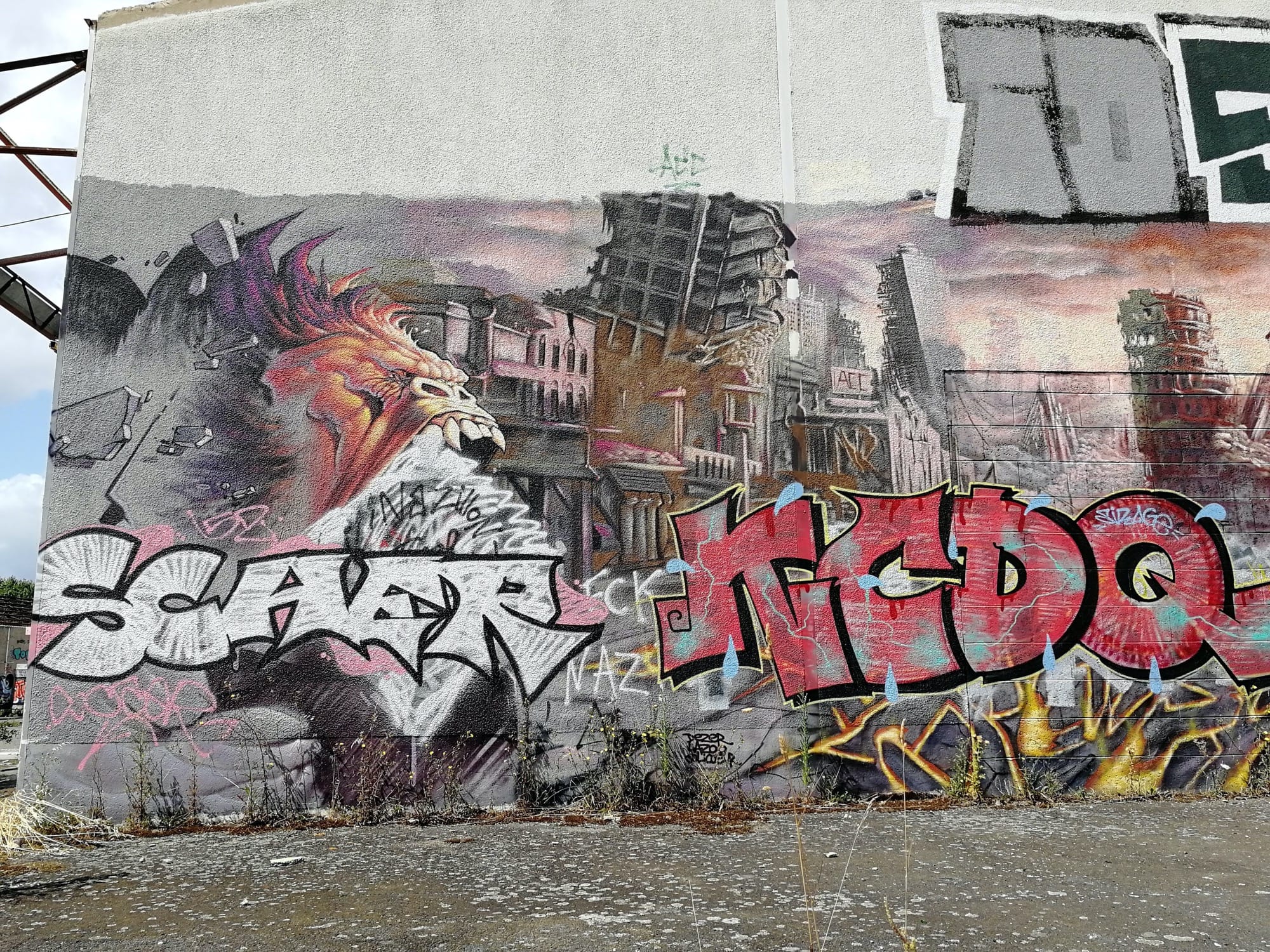 The artwork is of graffiti type. You can admire it in the city of Chantepie in France and more precisely here : 4002 Rue des Loges, 35135 Chantepie, France.