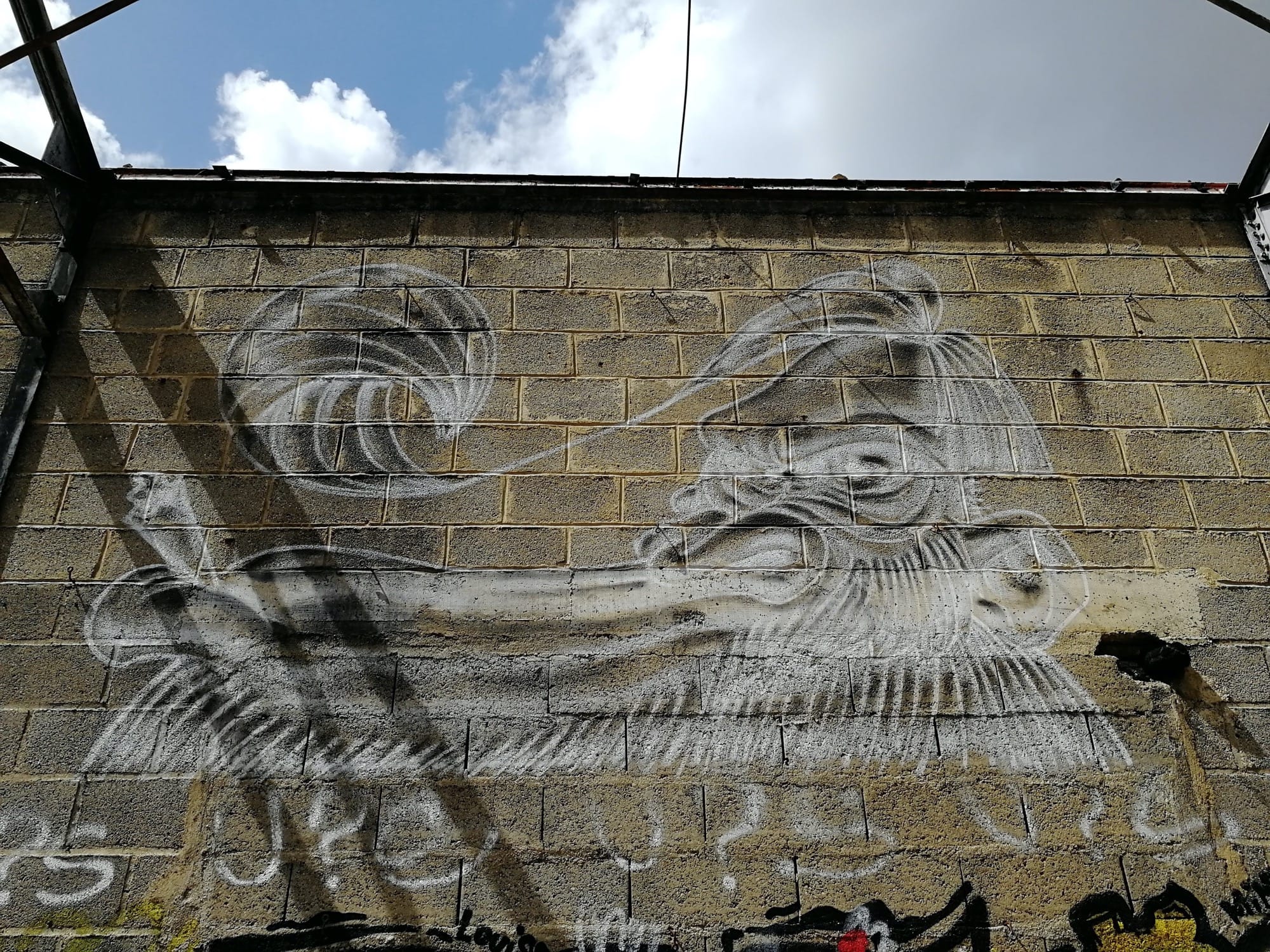 The artwork is of graffiti type. You can admire it in the city of Chantepie in France and more precisely here : 11 Rue du Moulin, 35135 Chantepie, France.