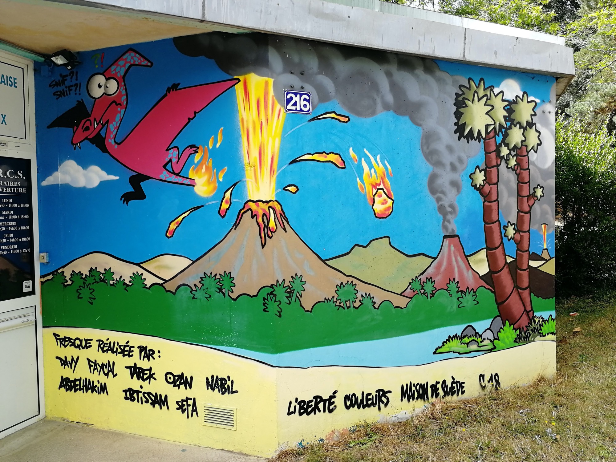 The artwork is of graffiti type. You can admire it in the city of Rennes in France and more precisely here : 187 Rue de Châtillon, 35000 Rennes, France.