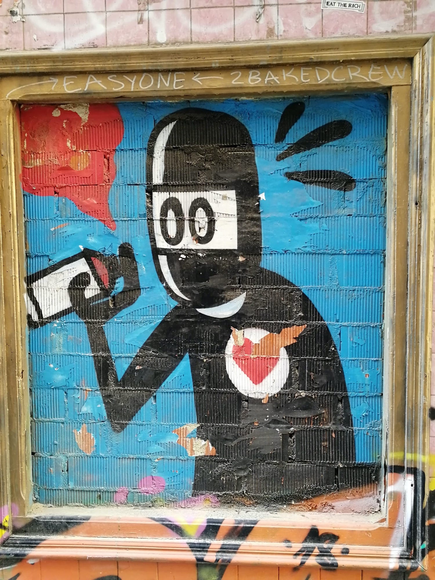 The artwork is of graffiti type. You can admire it in the city of València in Spain and more precisely here : Carrer del Cardenal Payà, 2, 46002 València, Valencia, Espagne.