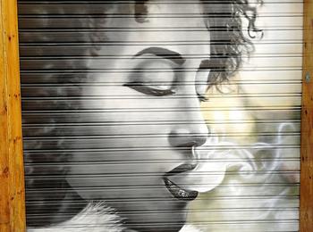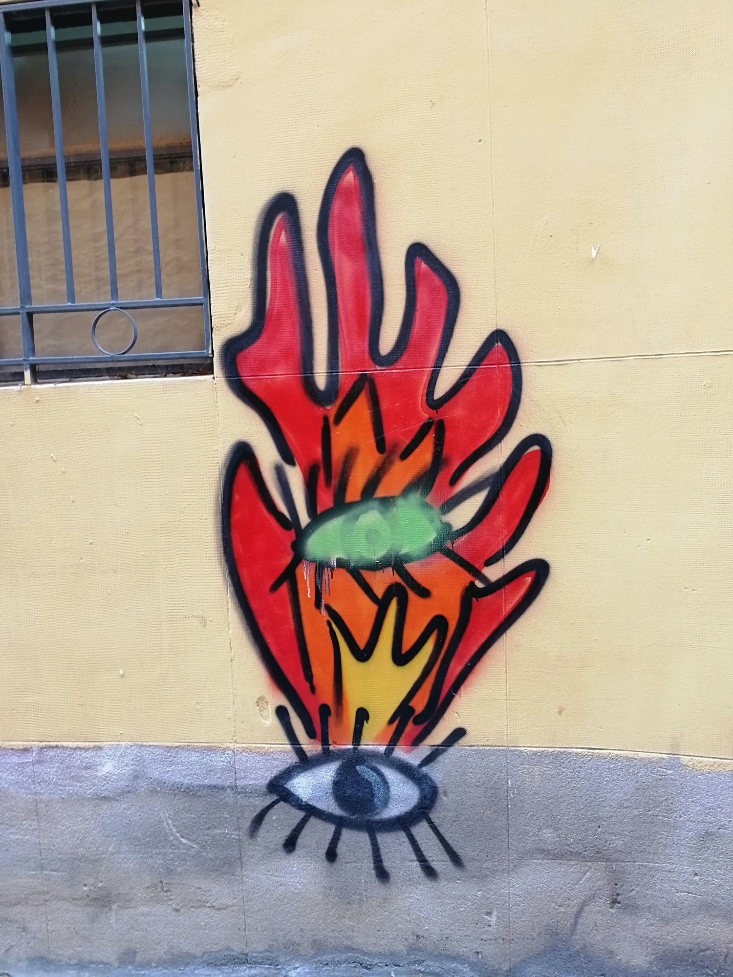 The artwork is of graffiti type. You can admire it in the city of València in Spain and more precisely here : Carrer de Samaniego, 26, 46003 València, Valencia, Espagne.