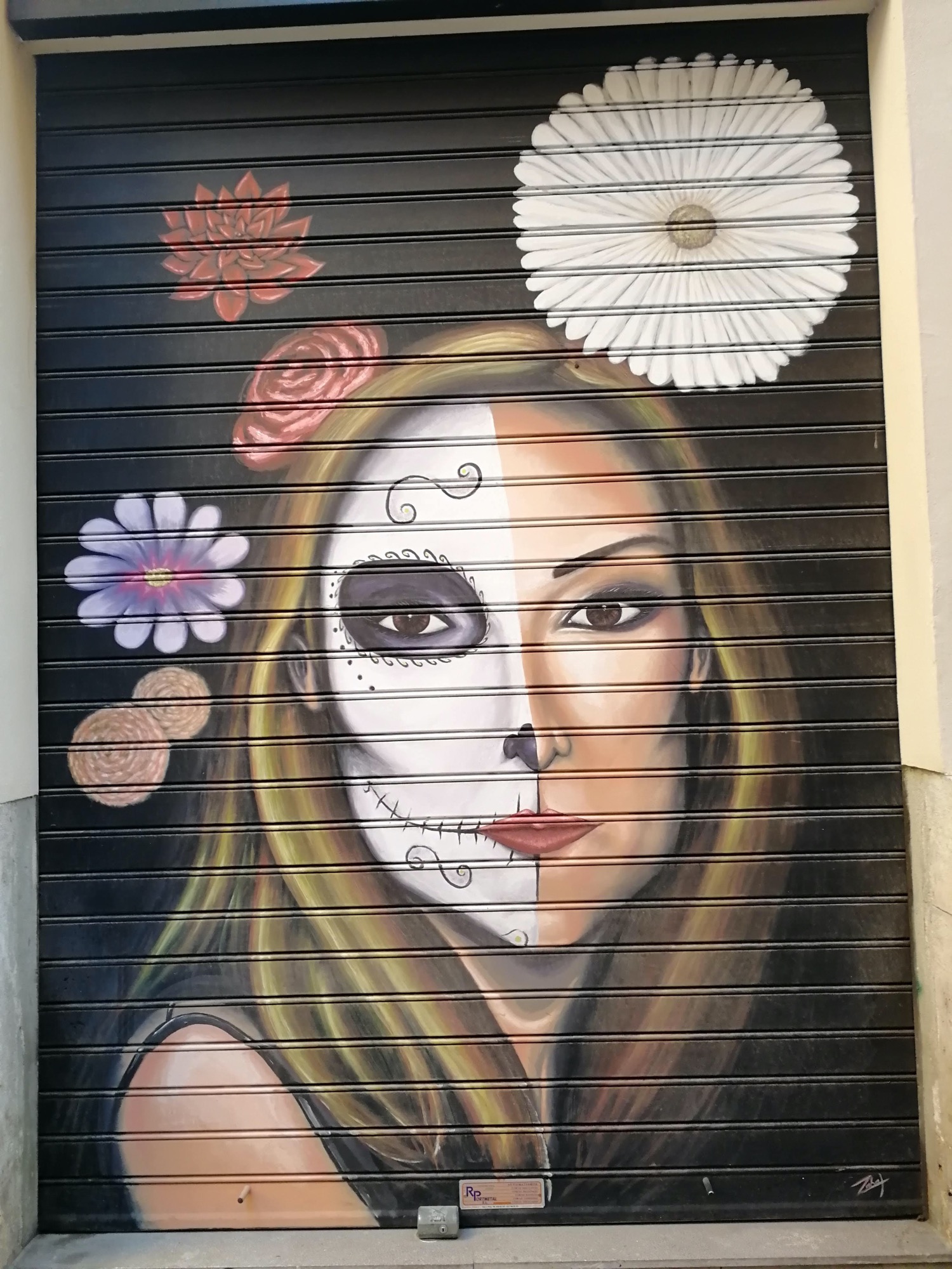 The artwork is of graffiti type. You can admire it in the city of València in Spain and more precisely here : Carrer de Palomino, 14, 46003 València, Valencia, Espagne.