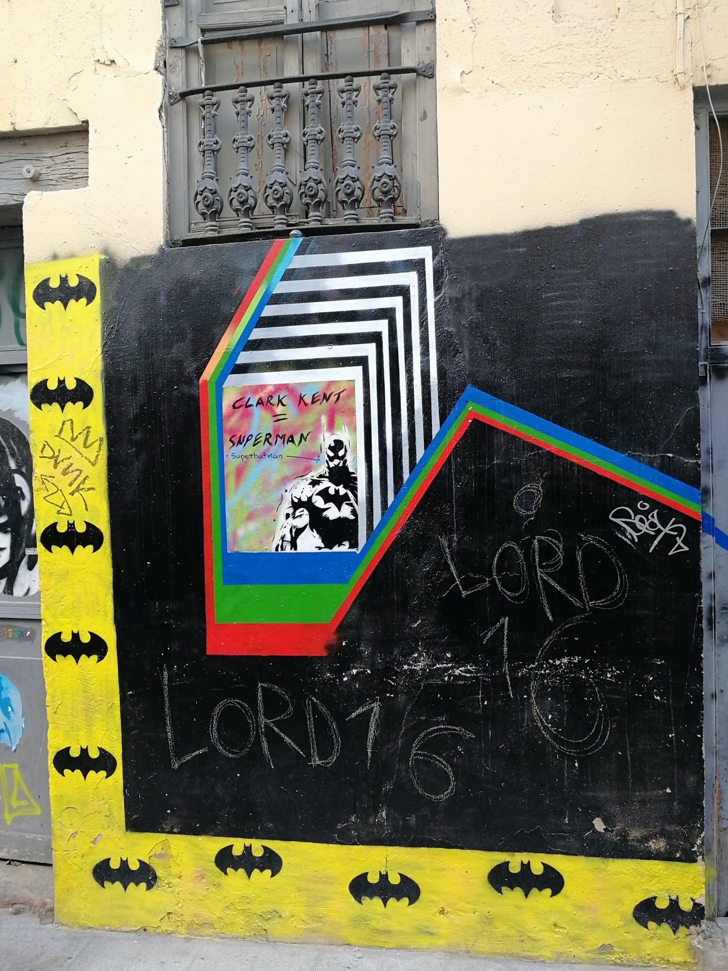 The artwork Batman is of graffiti type. You can admire it in the city of València in Spain and more precisely here : Carrer de la Creu, 5, 46003 València, Valencia, Espagne.
