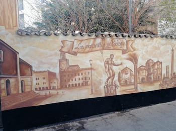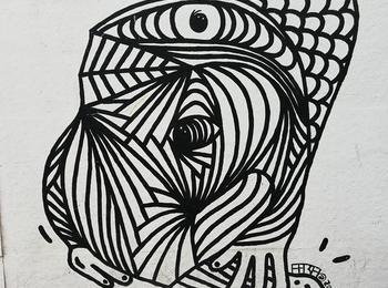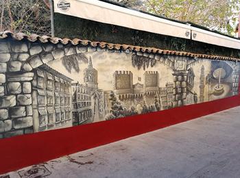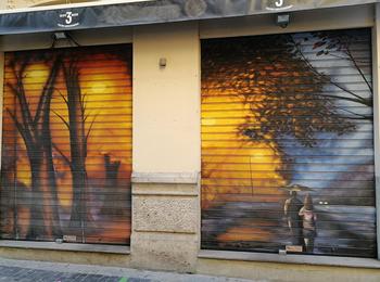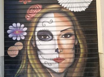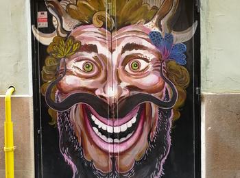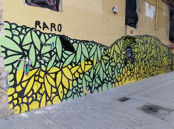 The artwork is of graffiti type. You can admire it in the city of València in Spain and more precisely here : Carrer d'en Roda, 1, 46003 València, Valencia, Espagne.
