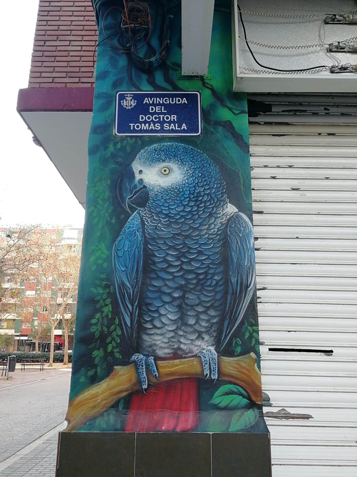 The artwork is of graffiti type. You can admire it in the city of València in Spain and more precisely here : Avinguda del Doctor Tomàs Sala, 2, 46017 València, Valencia, Espagne.