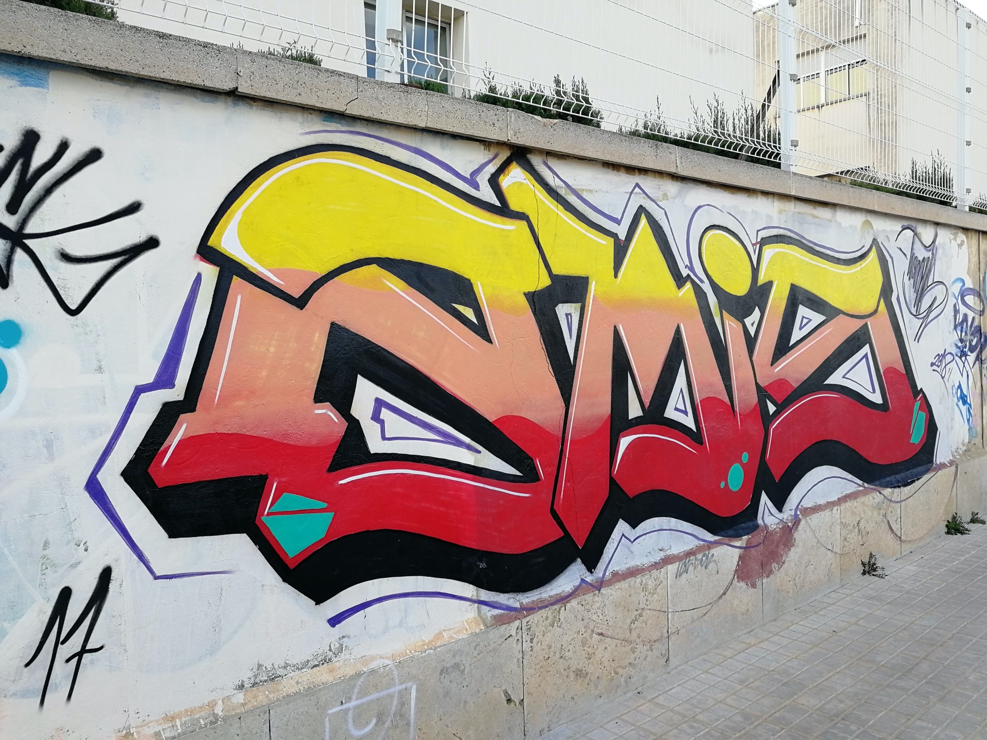 The artwork is of graffiti type. You can admire it in the city of València in Spain and more precisely here : Plaça Num 139 Res Urb, 180, 46017 València, Valencia, Espagne.