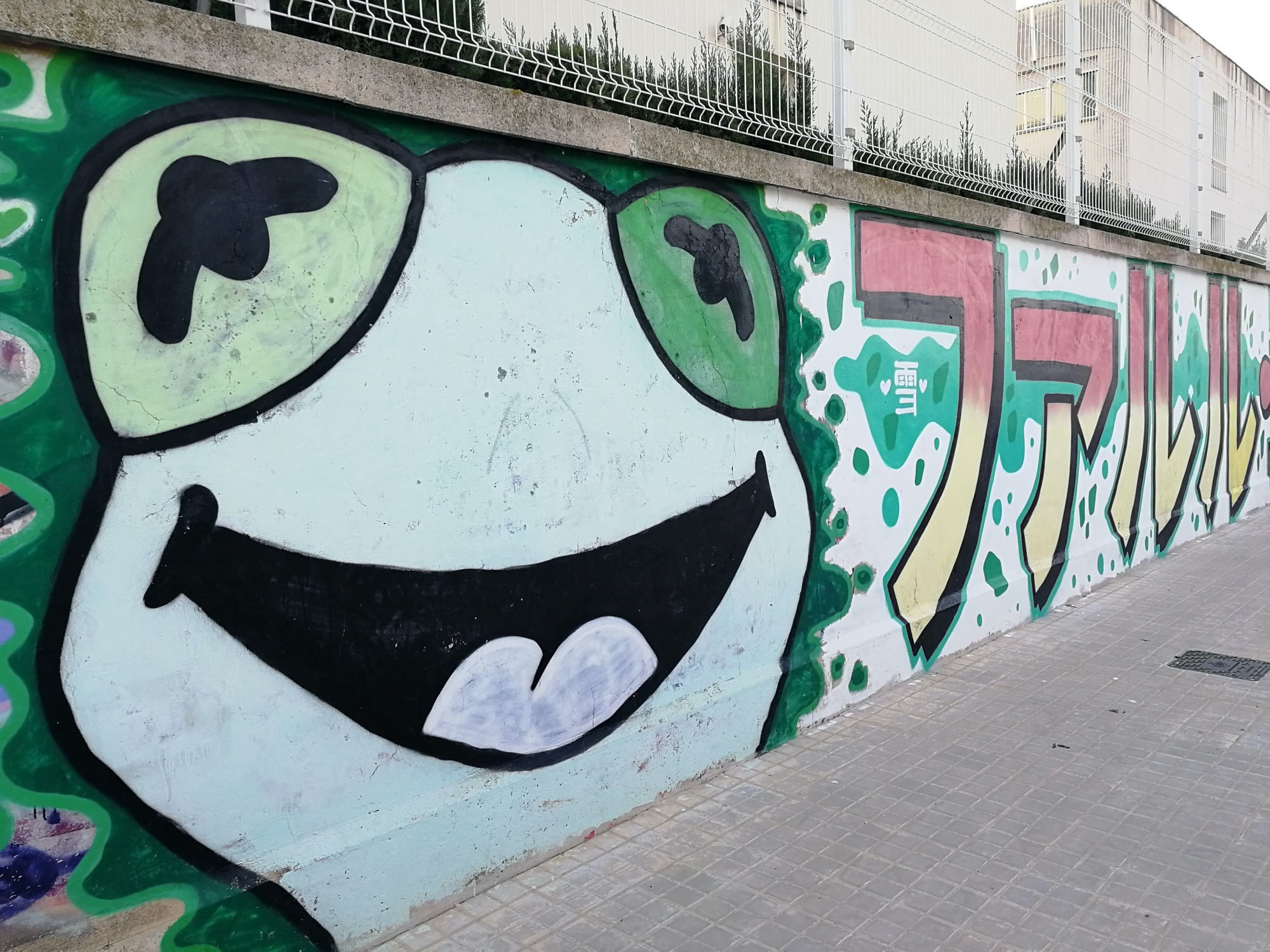 The artwork is of graffiti type. You can admire it in the city of València in Spain and more precisely here : Plaça Num 139 Res Urb, 180, 46017 València, Valencia, Espagne.